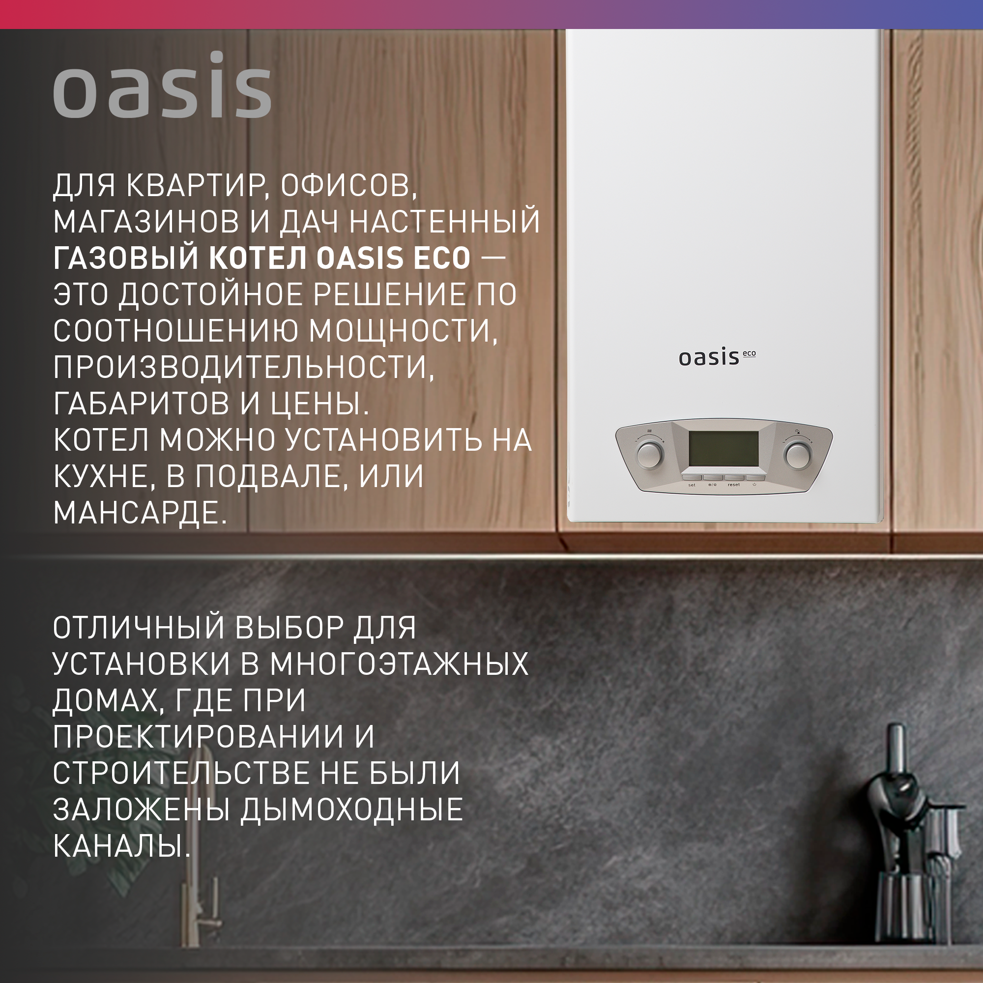 Котел газовый настенный двухконтурный бытовой Oasis Eco RE-24 47 380 ₽