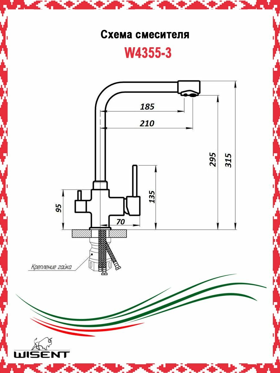 Смеситель WISENT 4355 с подводкой питьевой воды