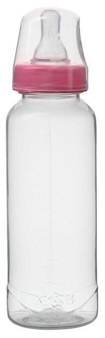 Бутылочка для кормления M&B, классическое горло, от 3 мес, 250 мл, цилиндр, розовый 200 ₽