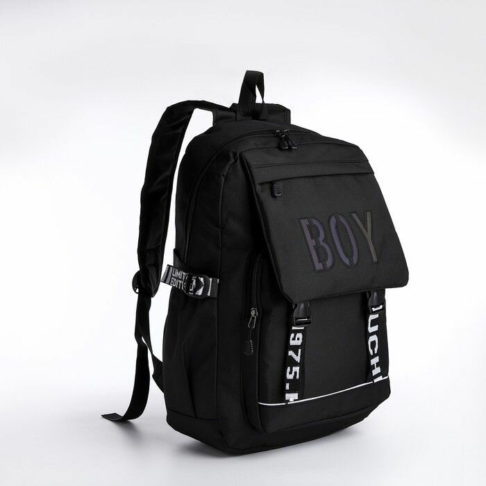 Рюкзак школьный на молнии из текстиля, 5 карманов, цвет чёрный/Рюкзак школьный на молнии из текстиля, 5 карманов, цвет чёрный