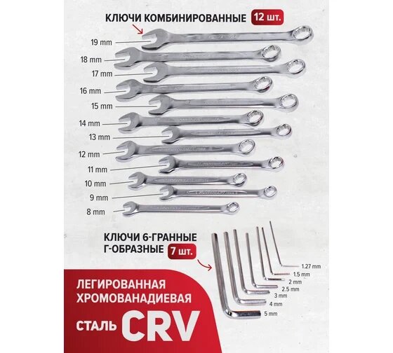 | Гаечные ключи подробно | 6х7, 8х9, 10х11, 12х13, 14х17 |