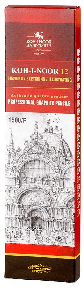 Набор 12 шт. - Карандаш чернографитный Koh-I-Noor "1500" F, заточенный информация:
