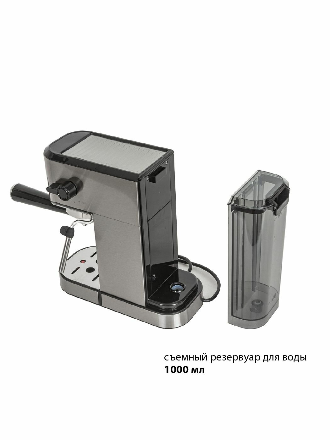 Кофеварка рожковая Pioneer с капучинатором и двойным фильтром, съемный резервуар 1 л, приготовление 1 или 2 чашек, генерация пара, подогрев чашек, 1350 Вт
