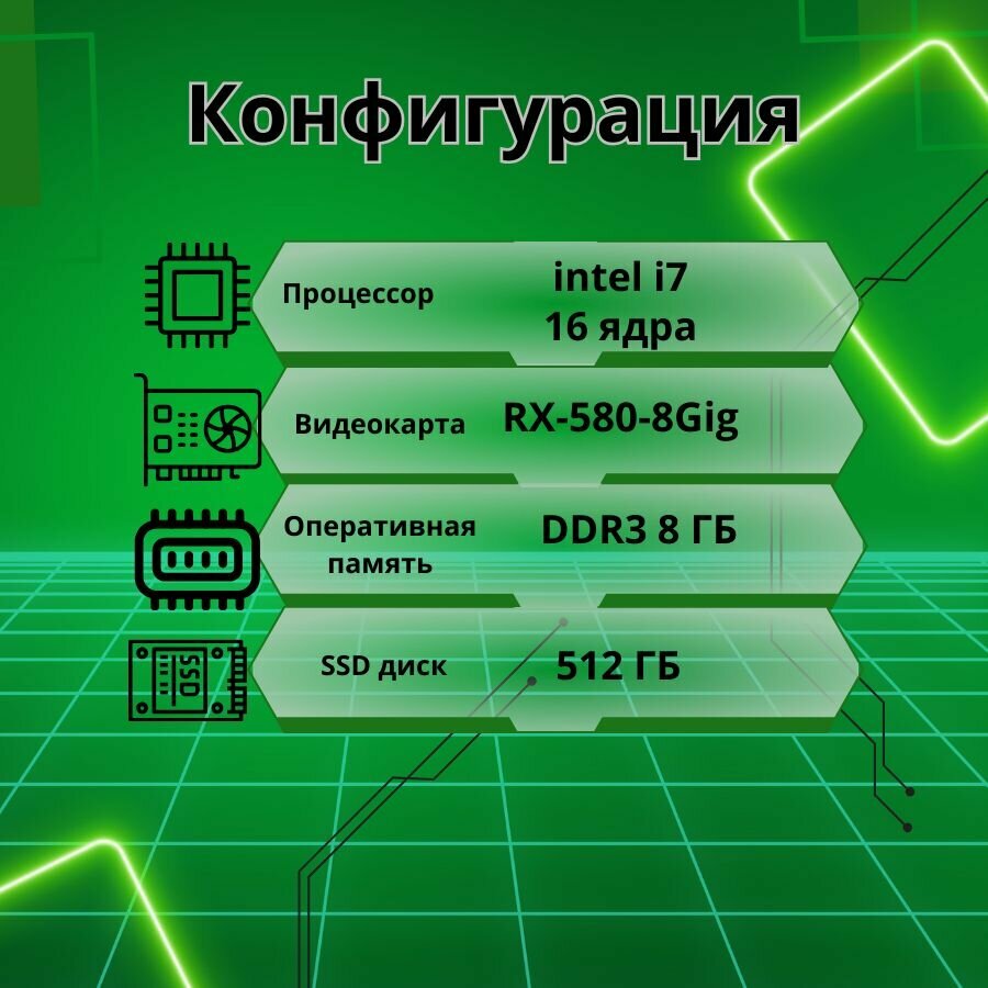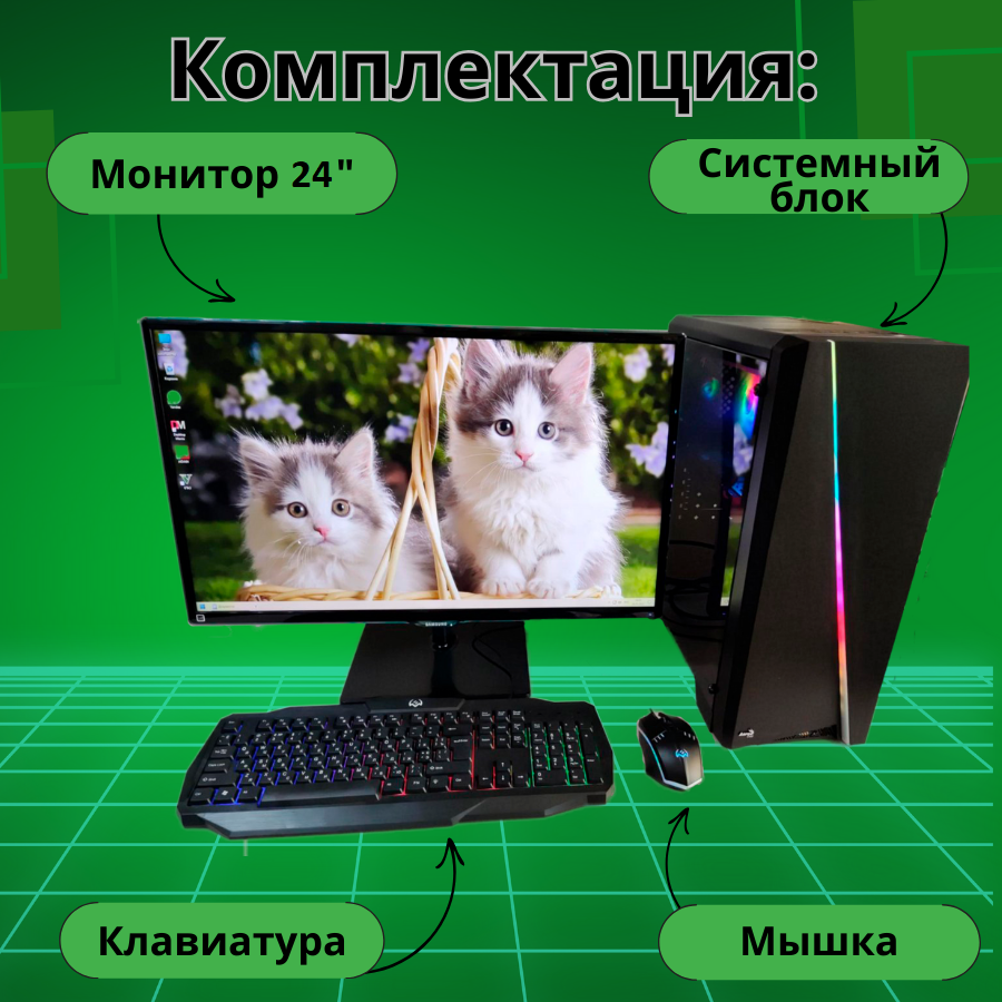 Компьютер для игр и учебы intel E5/RX-580/16GB/SSD-512/Монитор 24 информация: