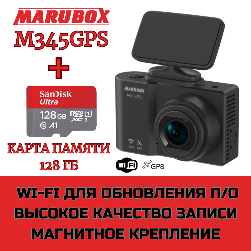 Видеорегистратор с GPS-информатором Marubox M345GPS + SanDisk microSDXC UHS-I 128Gb