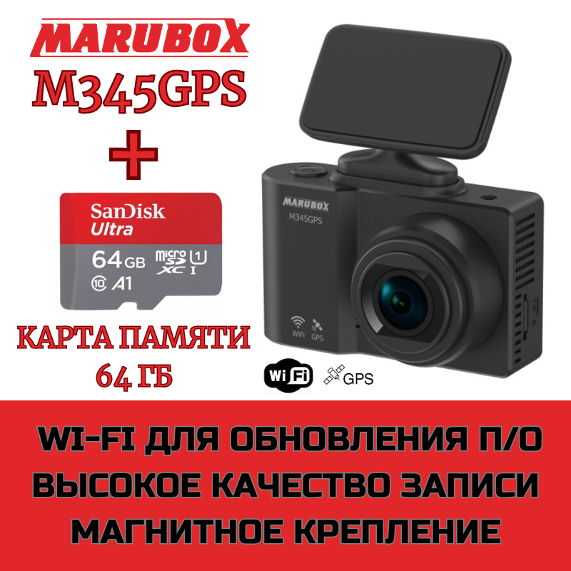 Видеорегистратор с GPS-информатором Marubox M345GPS + SanDisk microSDXC UHS-I 64Gb