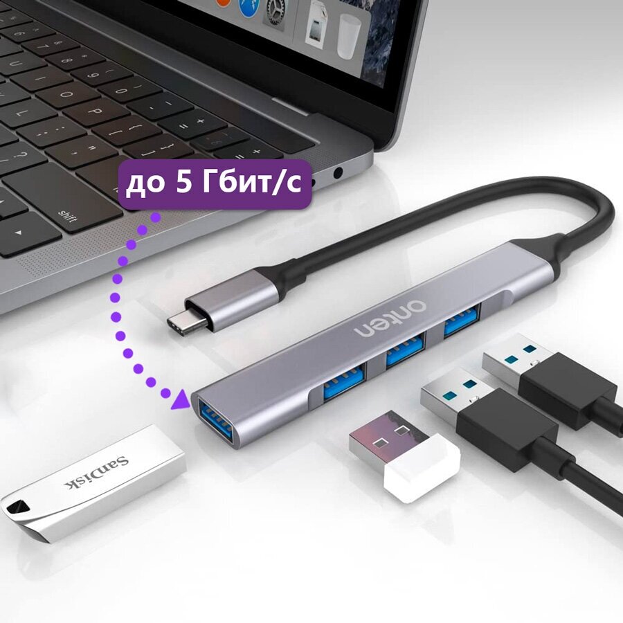 Отзывы на USB Type-C разветвитель хаб Onten на 4 порта 3xUSB 2.0 , USB 3.0 - Серый