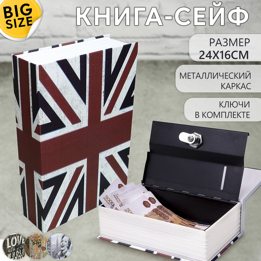 10 цен на Копилка Книга с замком "Британский флаг" 24х16 см, для денег, сейф с ключом, шкатулка металлическая, подарочная