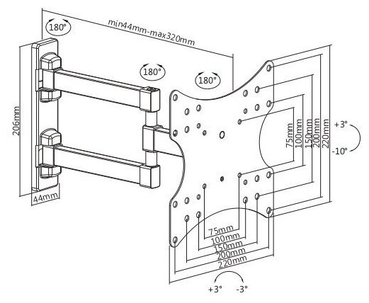 Кронштейн для телевизора 32"-90" ONKRON SM6 настенный, наклонно-поворотный, до 50 кг, чёрный