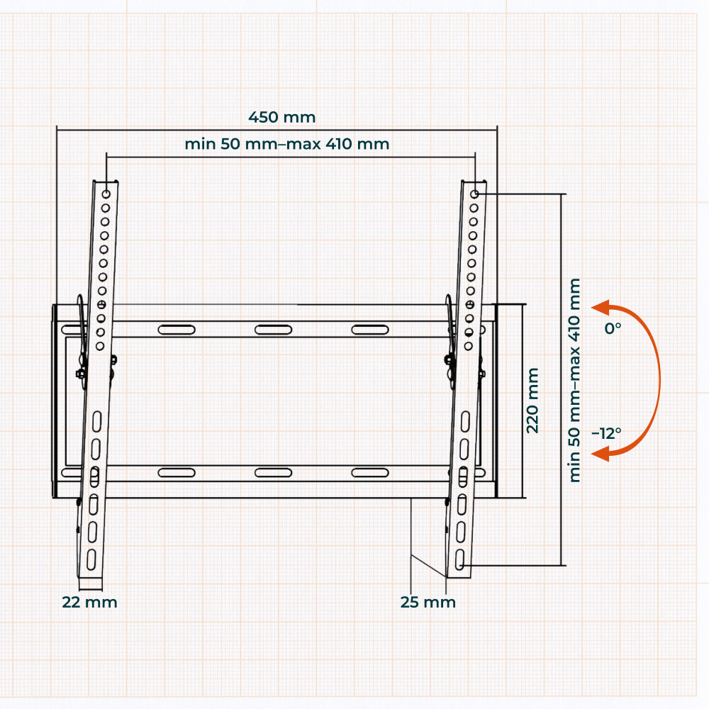 Кронштейн BAFF HN 26-65 настенный, с встроенным уровнем, регулировка угла наклона, до 45 кг информация: