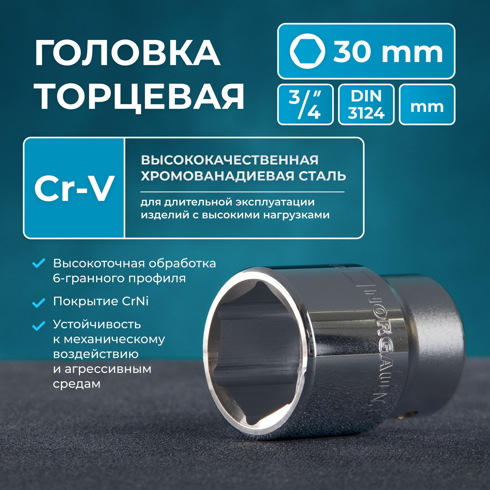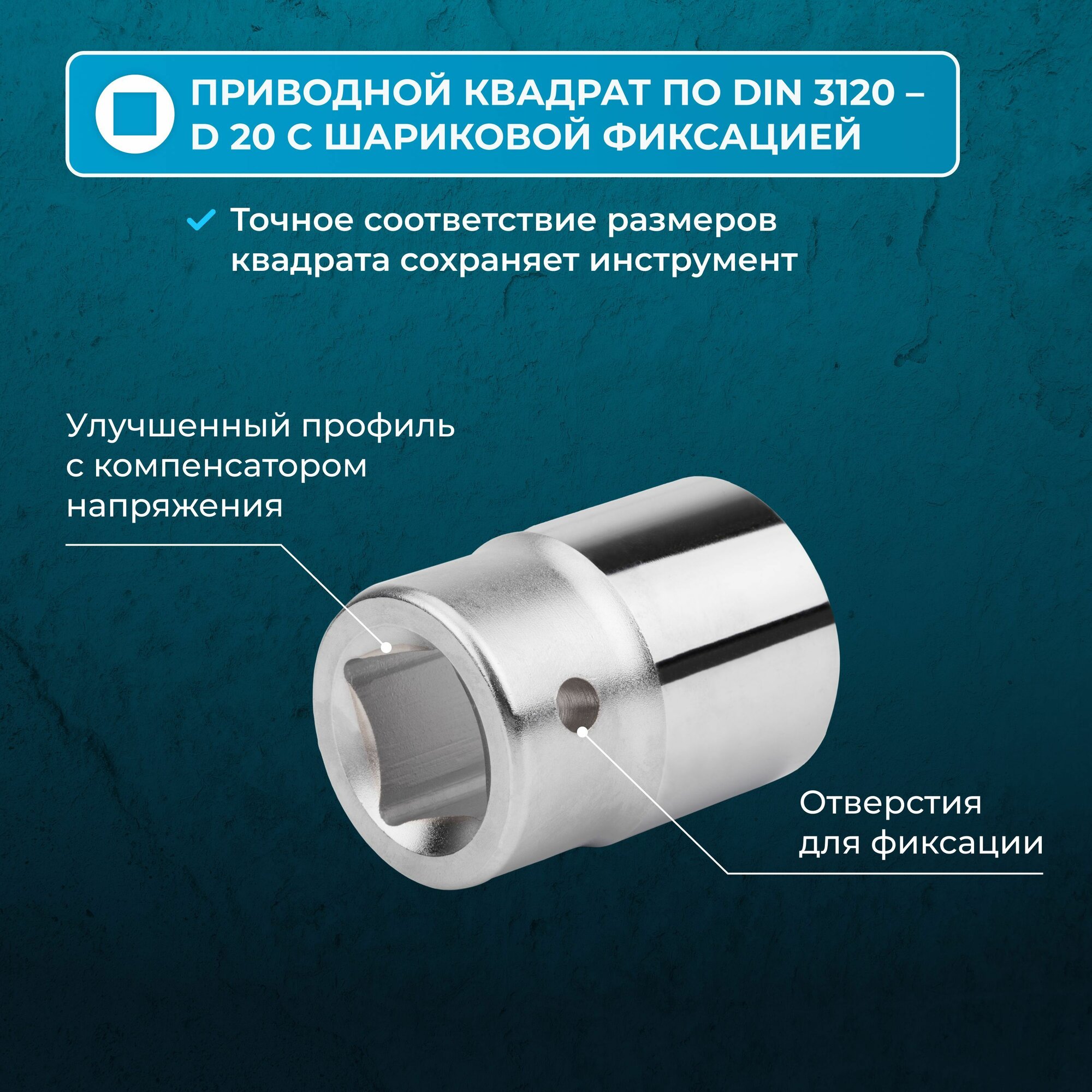 Головка на 30 NORGAU Industrial под квадрат 3/4 шестигранная удлиннённая с шариковой фиксацией, DIN 3124 информация: