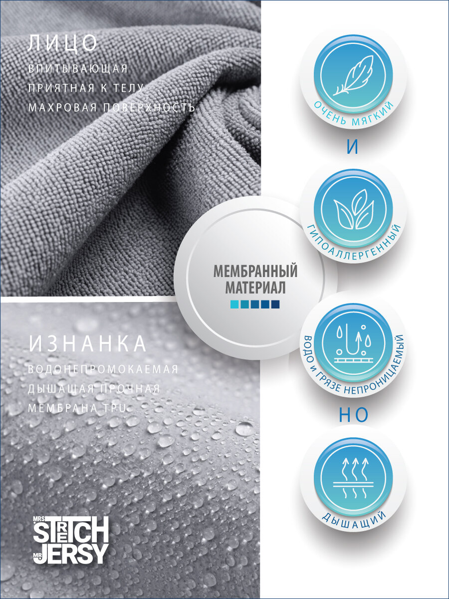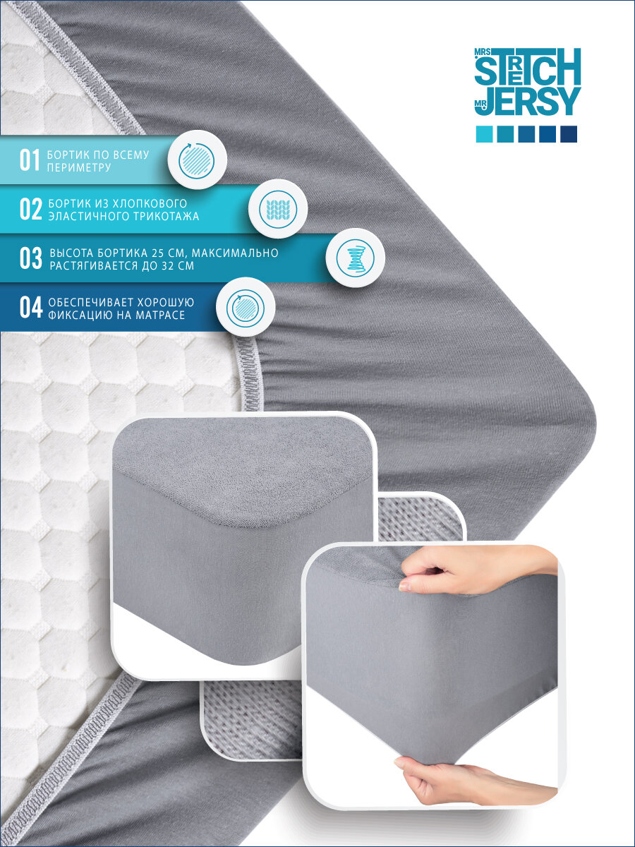 Наматрасник непромокаемый Stretch Jersy водонепроницаемый, 180 х 200 х 25см, серый 1 390 ₽