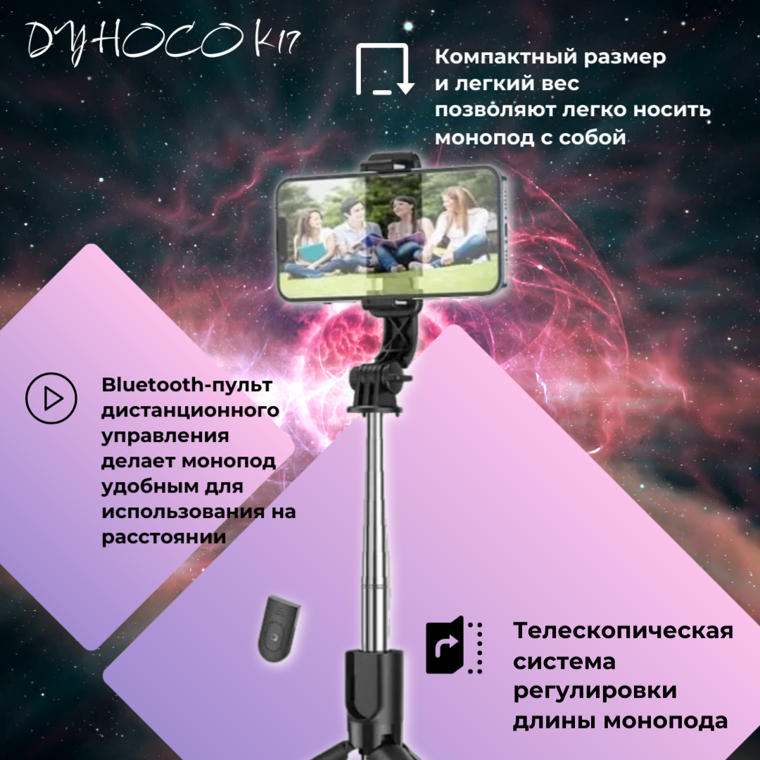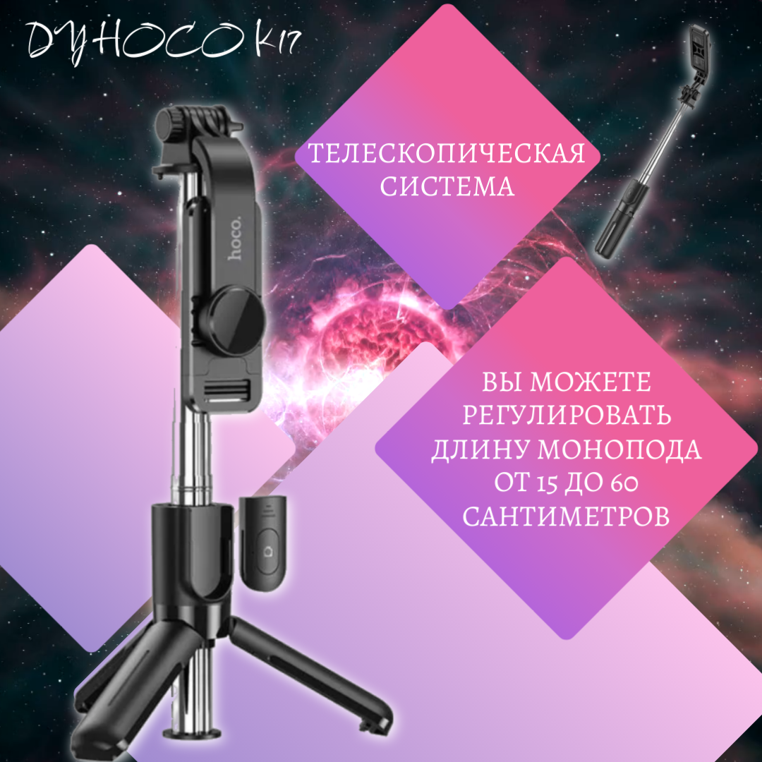 Монопод Hoco K17 - Bluetooth, штатив и трипод с пультом управления информация:
