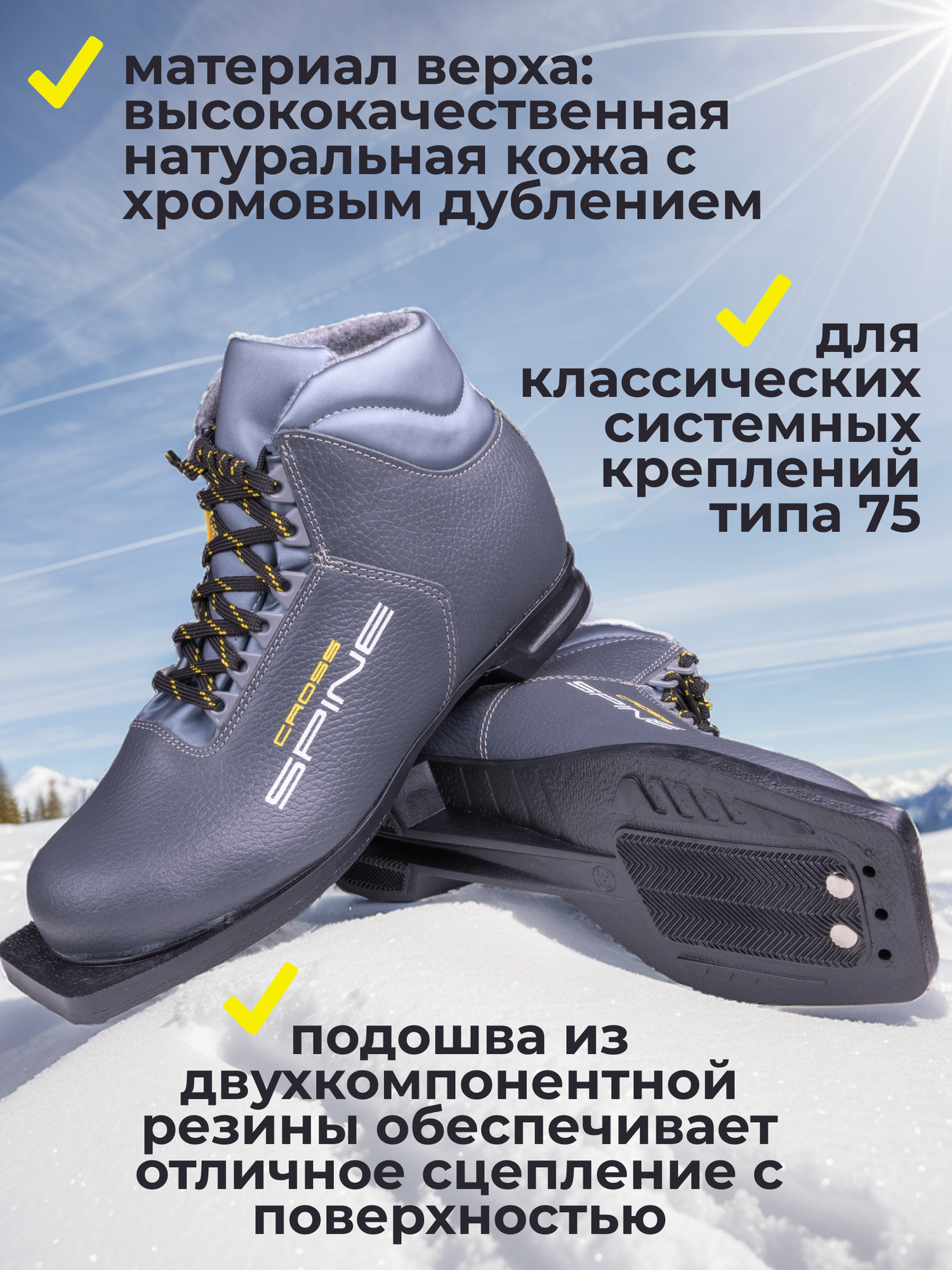 Ботинки лыжные 75 мм SPINE CROSS 35/7 (кожа) 39р. информация:
