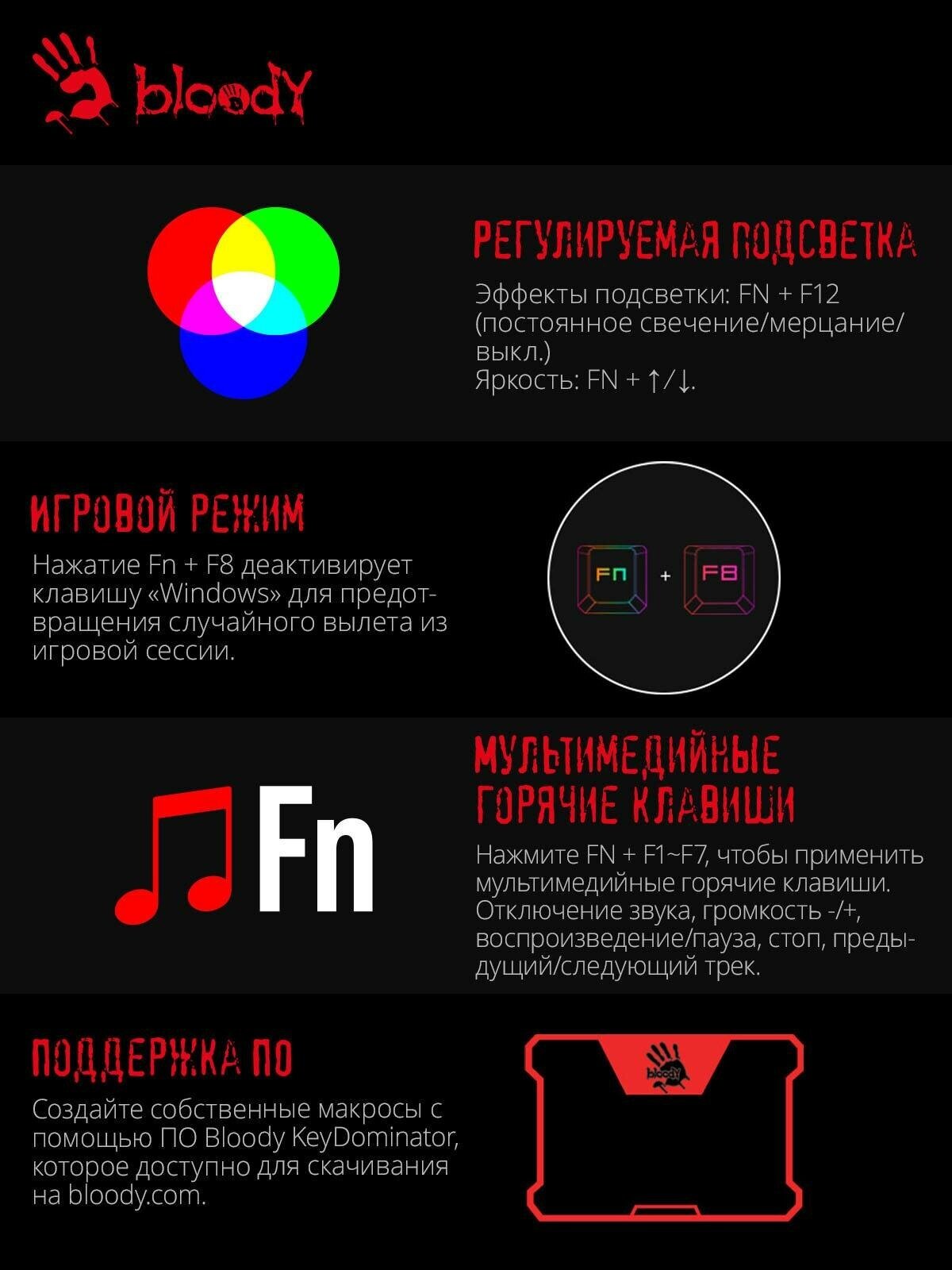 Клавиатура A4Tech Bloody B140N USB Multimedia for gamer LED black информация: