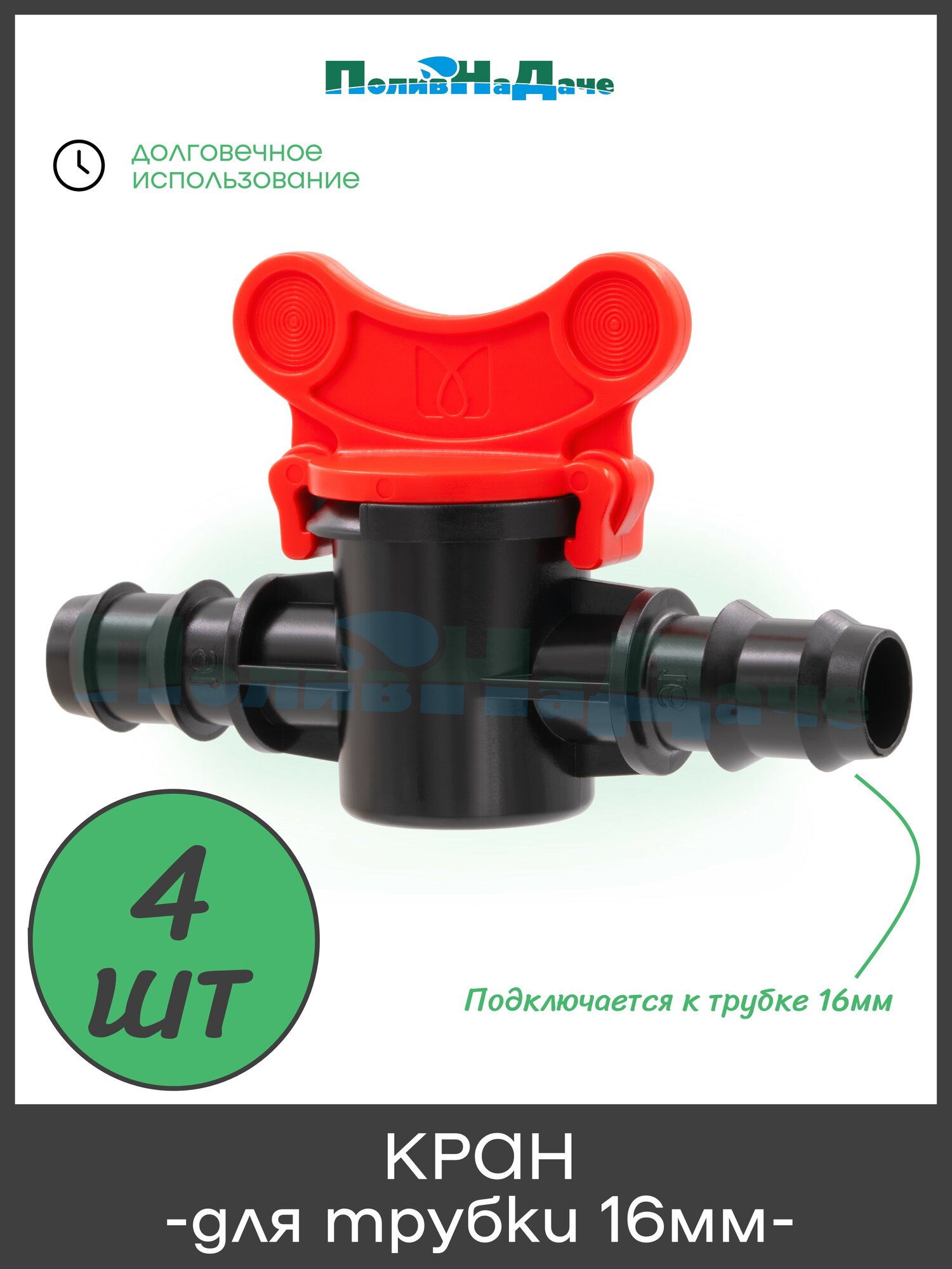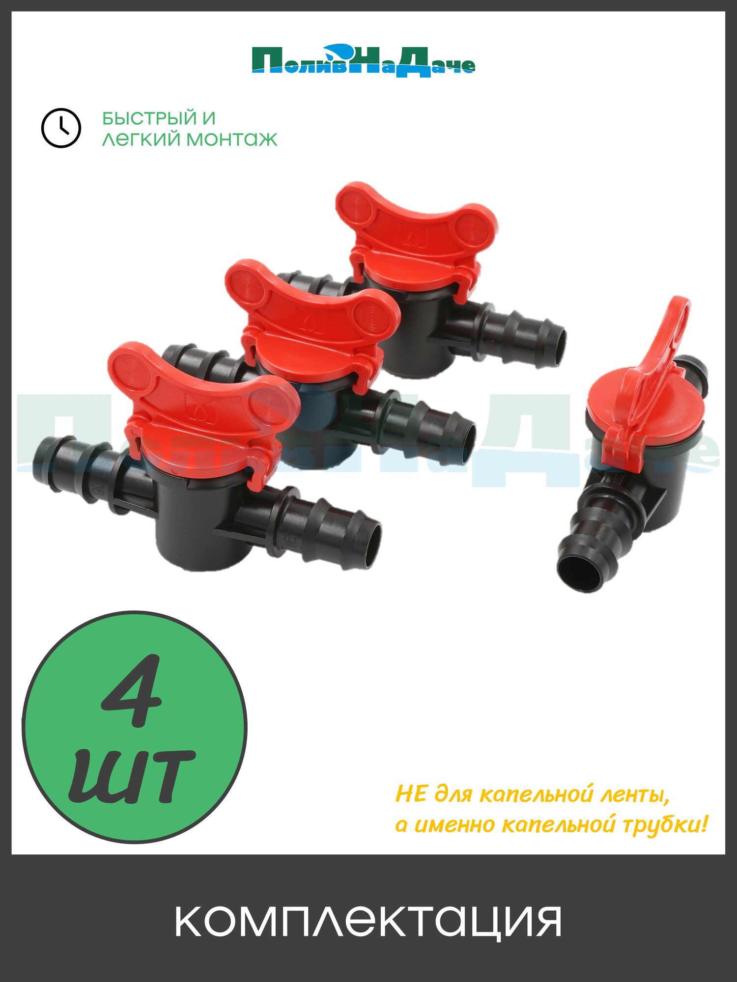 Кран проходной для слепой или капельной трубки 16 мм - 4 штуки информация: