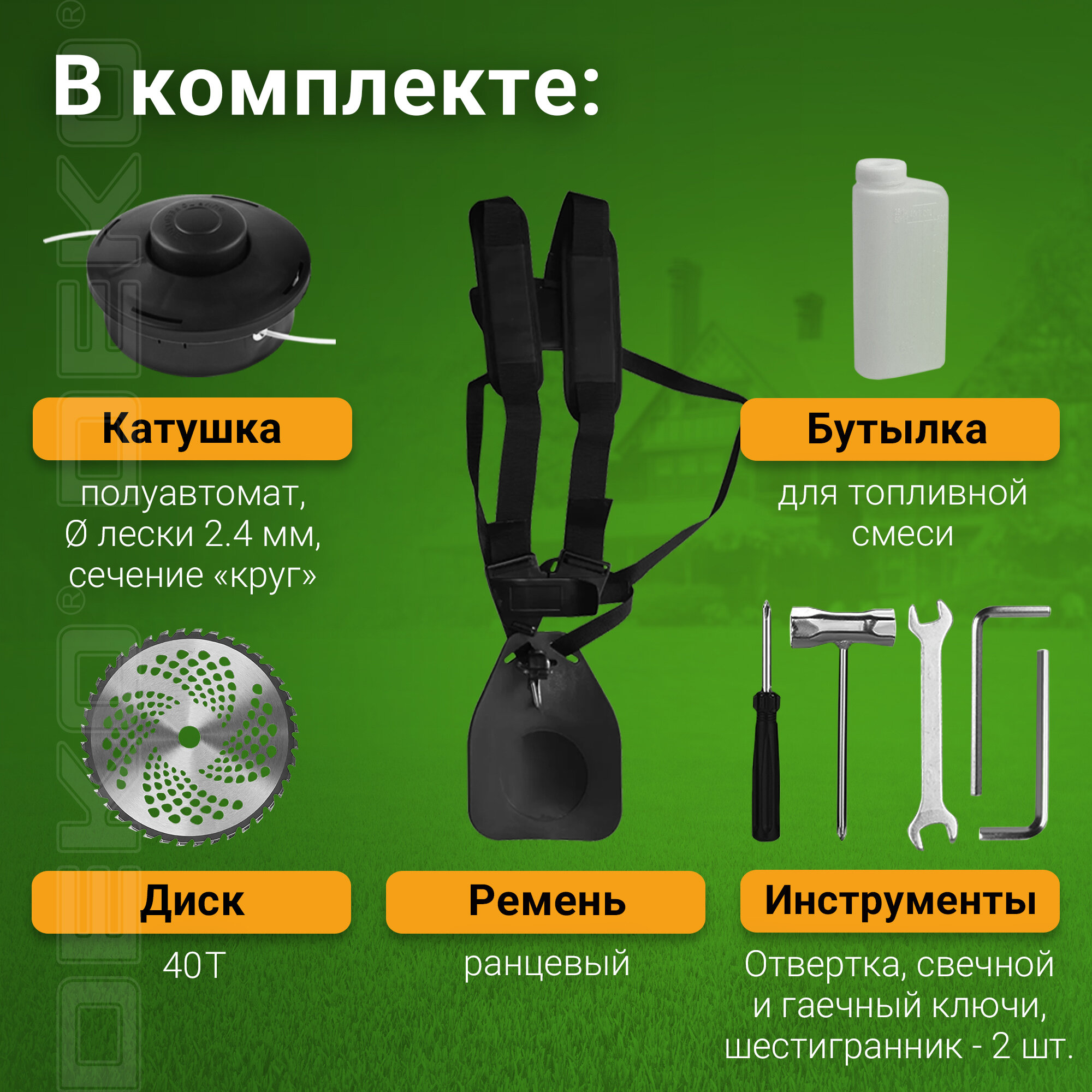 10 цен на Триммер бензиновый DEKO DKTR52 SET 2, 2200Вт, 3000-8500 об/мин, леска/диск