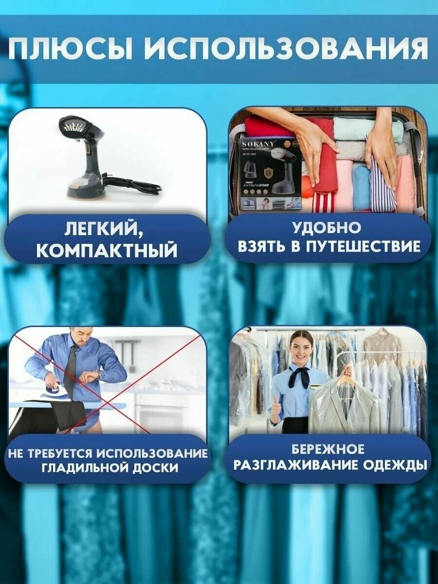 Отзывы на Отпариватель для одежды ручной "Sokany GT-3065" складной с резервуаром 120 мл, 1300 Вт