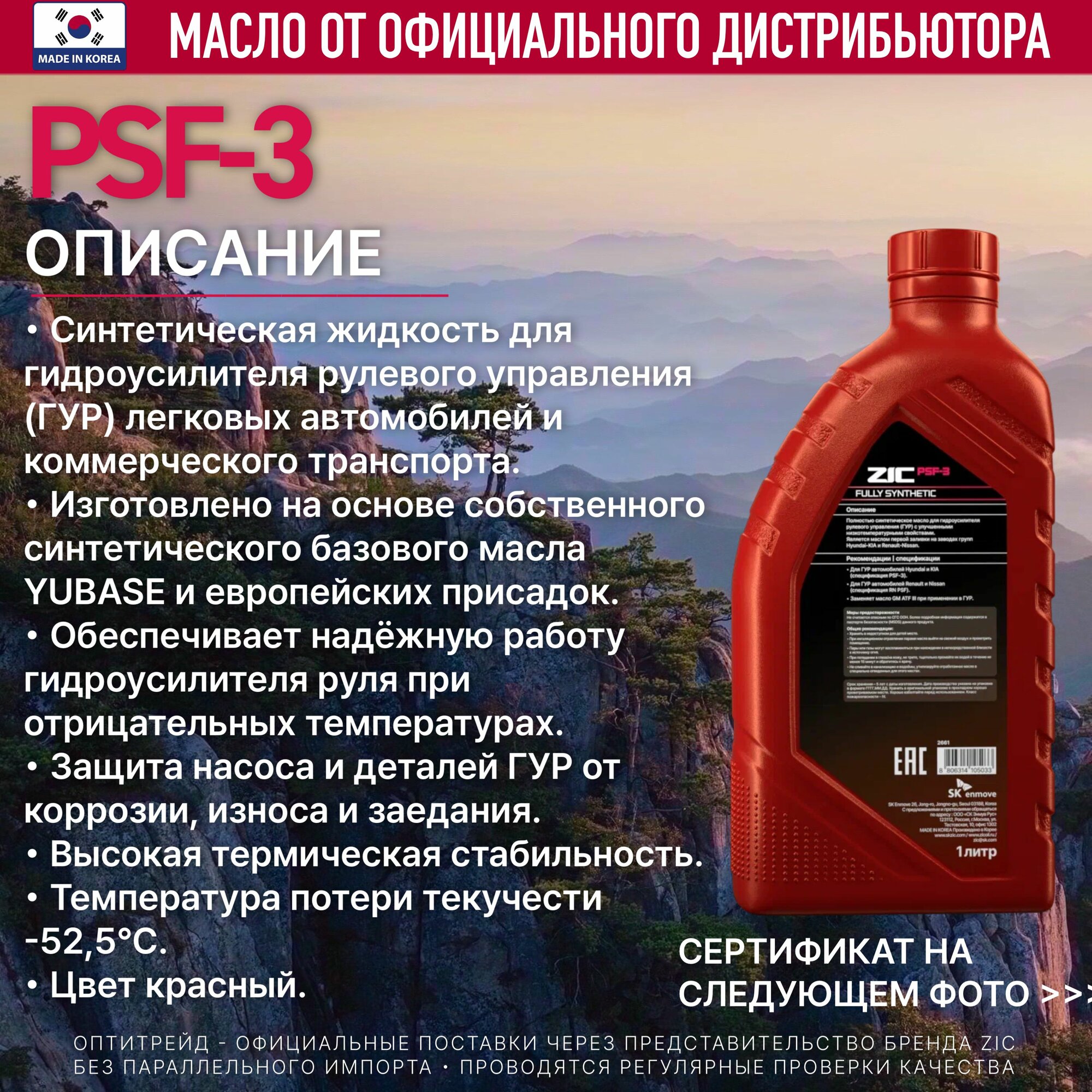 ZIC SK PSF-3 (1L) жидкость для гидроусилителя руля! синт.\Hyundai-KIA PSF-3, GM Dexron II, III, RN PSF ZIC / арт. 132661 - (1 шт)