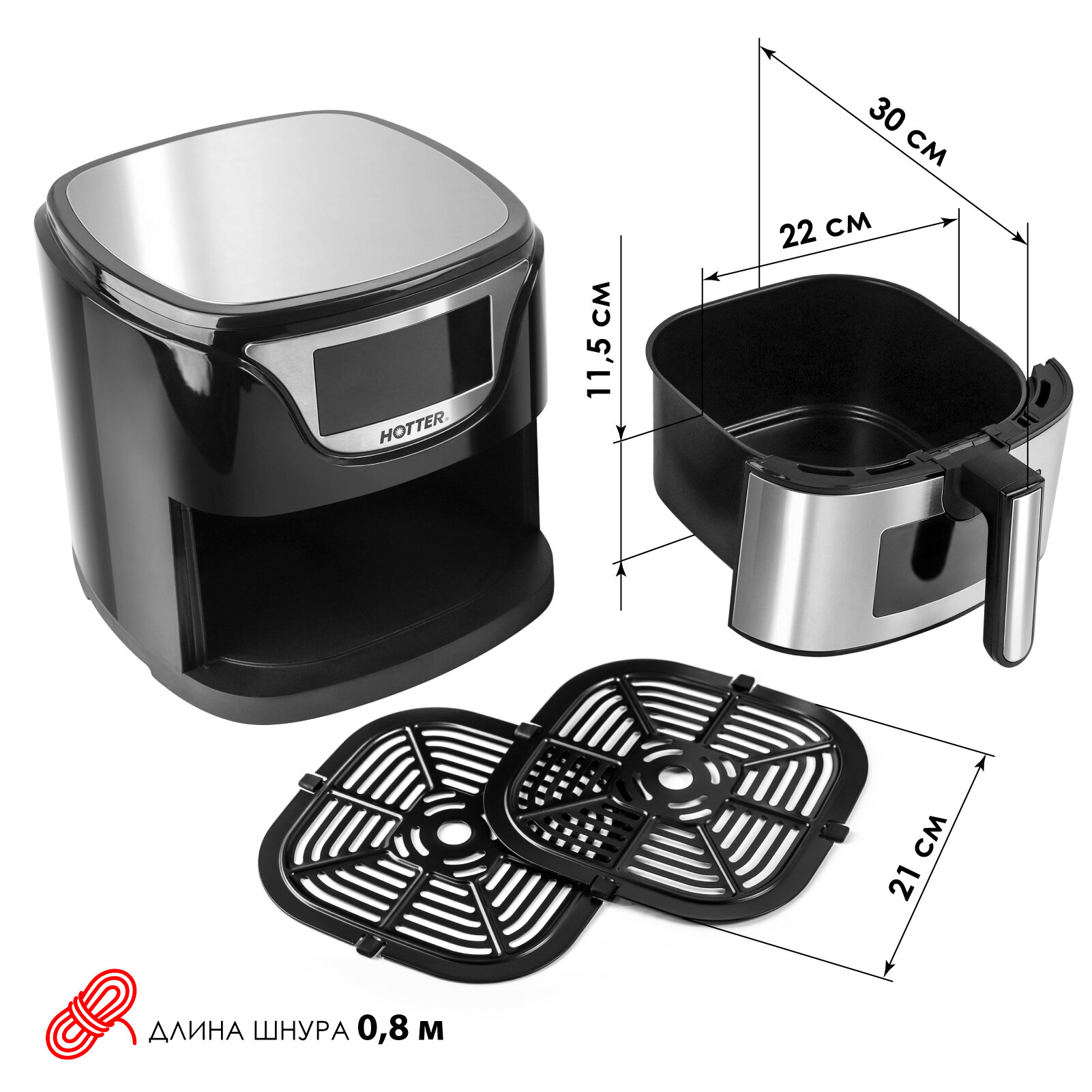 Аэрогриль HOTTER HX-588, объем 4.5л, 7 автопрограмм , регулировка времени и температуры, обзорное окно, черный/ металлик информация: