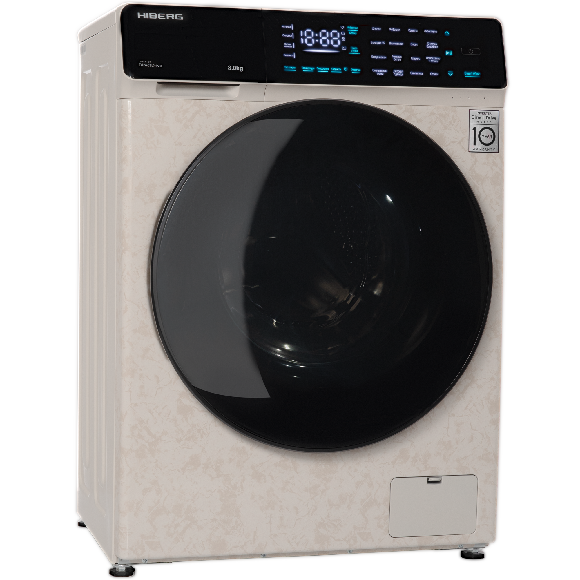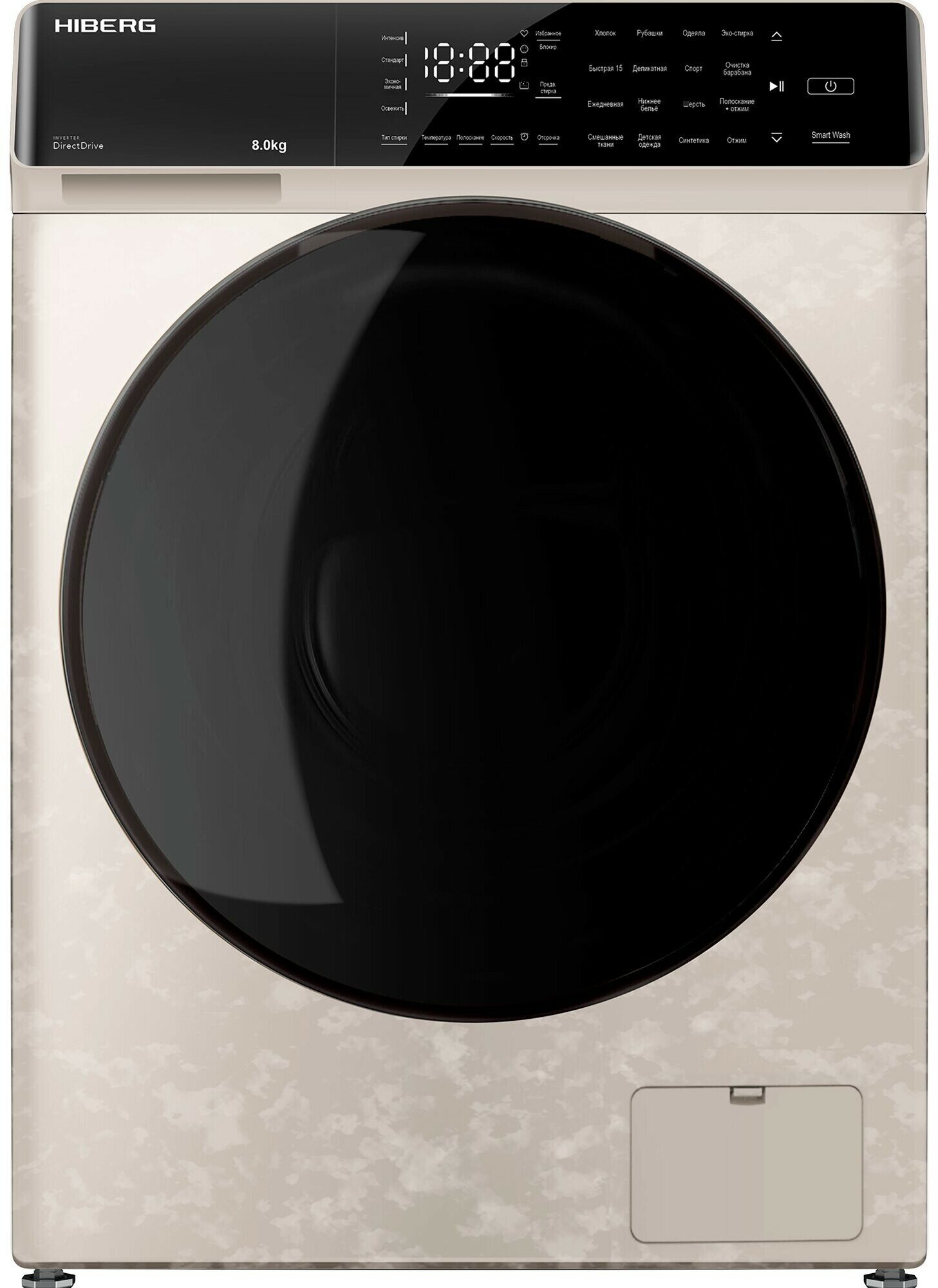 Стиральная машина HIBERG i-DDQ9 - 812 Ym, инверторная, 8 кг загрузка, 1200 об/мин, 16 программ, Smart wash, таймер, бежевый мрамор