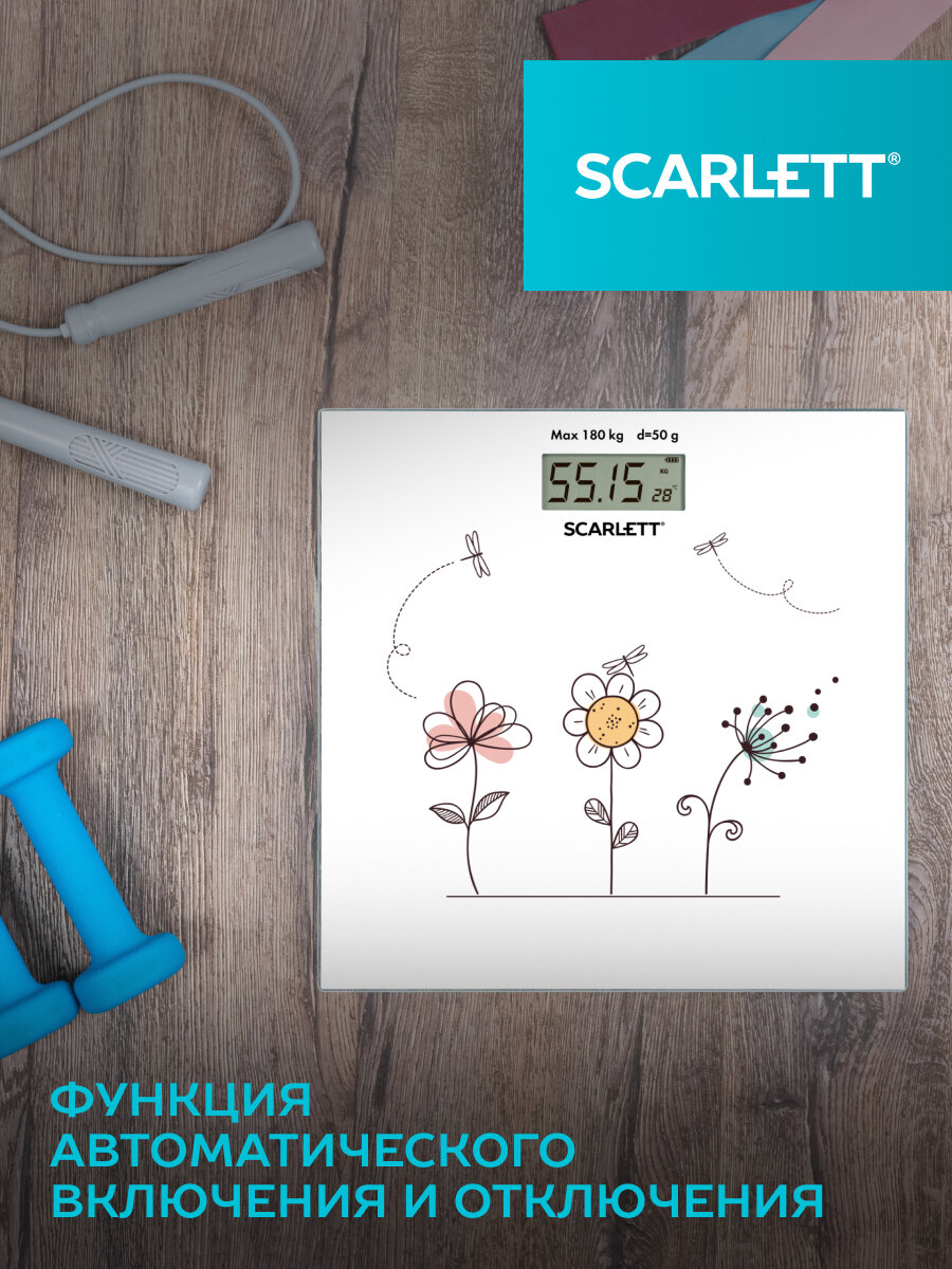 Электронные весы Scarlett SC-BS33E067, с рисунком, с измерением температуры, до 180кг