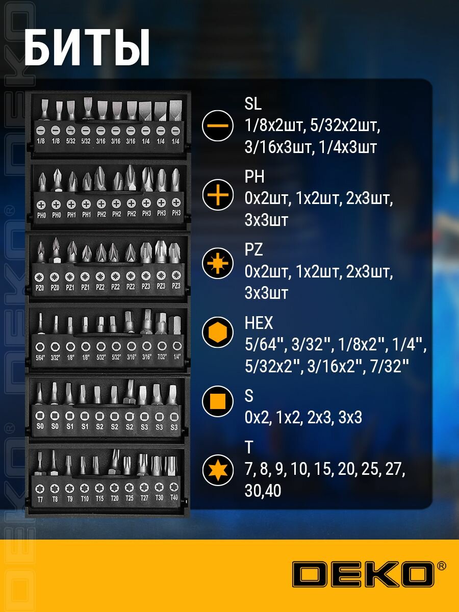 Набор профессиональных отверток и бит DEKO SS100 с удобной подставкой (100 предметов) информация: