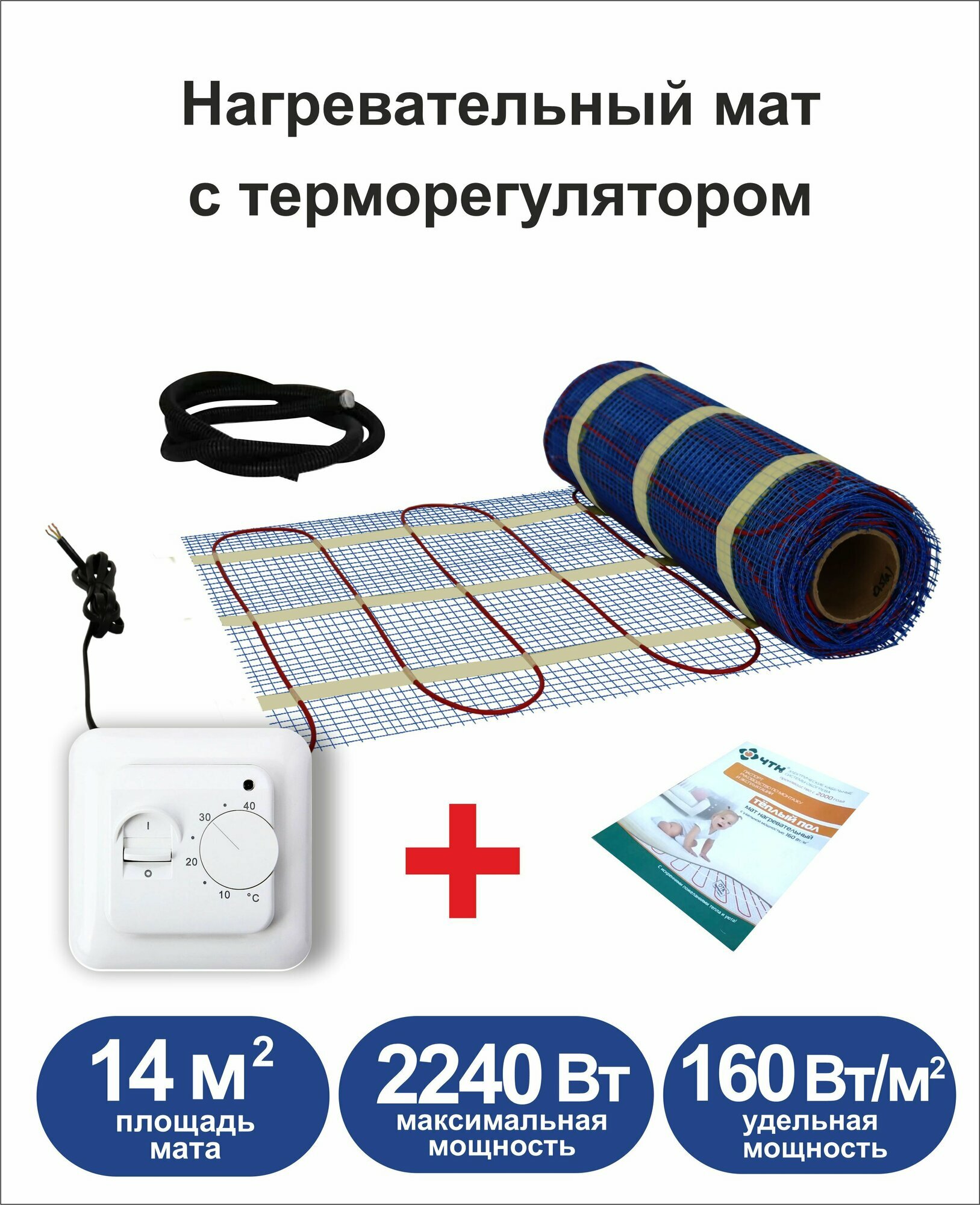 Теплый пол электрический ЧТК 14,0 м2 с терморегулятором информация: