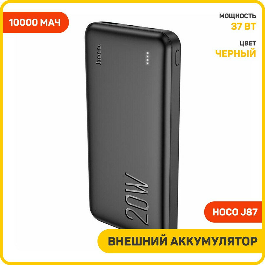 Портативный аккумулятор HOCO J87 Tacker, 3A, 10000 мА⋅ч, черный информация: