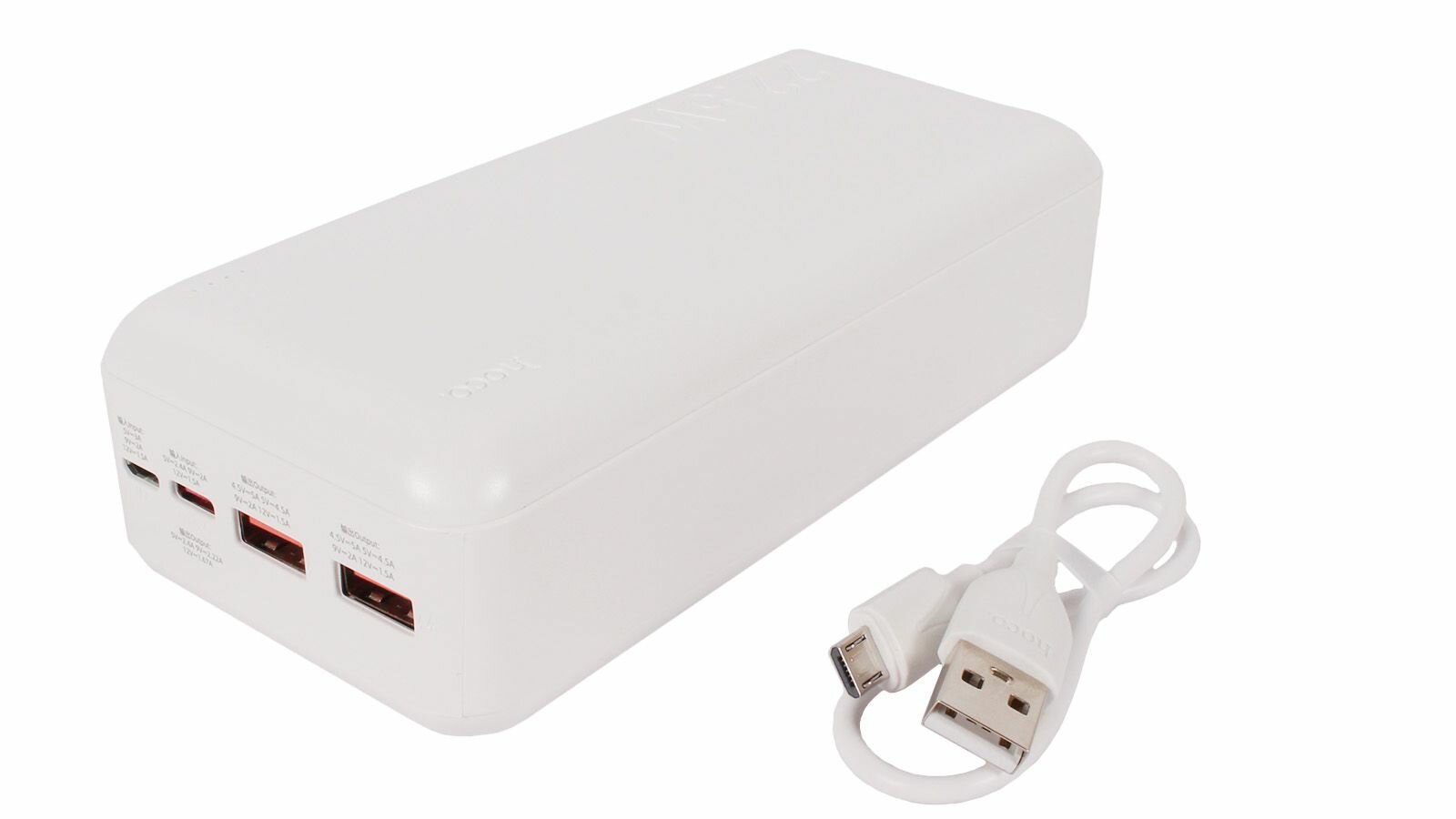 10 цен на Универсальный Доп. Аккумулятор 30000mAh, J101B, HOCO, выход: 2 USB (22.5W)+1 PD (20W), белый