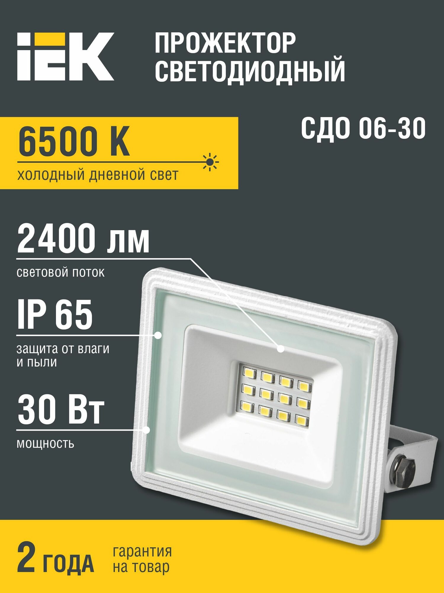 Прожектор светодиодный СДО 06-30 IP65 6500K IEK информация: