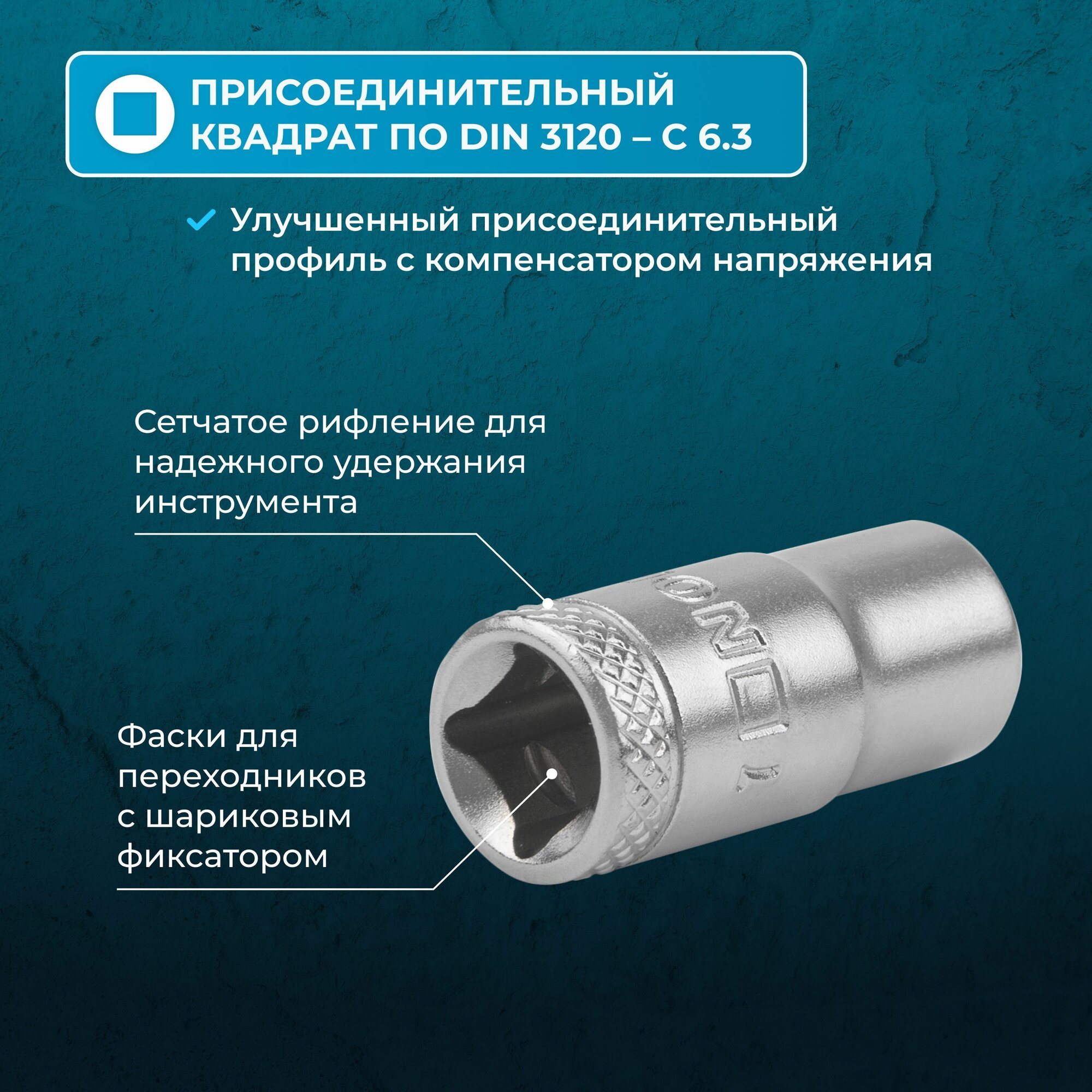 Головка на 7 квадрат 1/4" NORGAU Industrial с шариковой фиксацией, шестигранная, DIN 3124 информация: