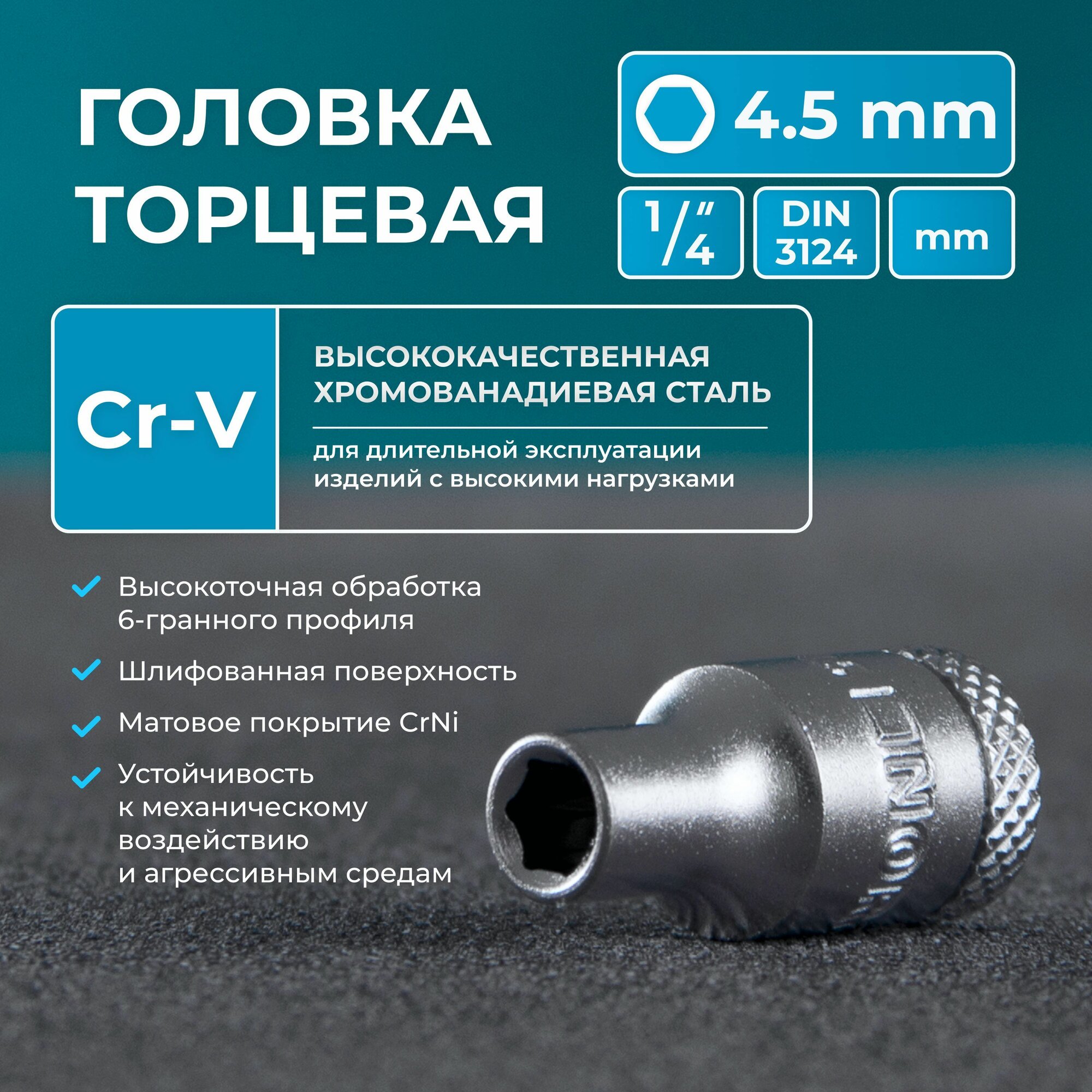10 цен на Головка на 4,5 квадрат 1/4" NORGAU Industrial с шариковой фиксацией, шестигранная, DIN 3124