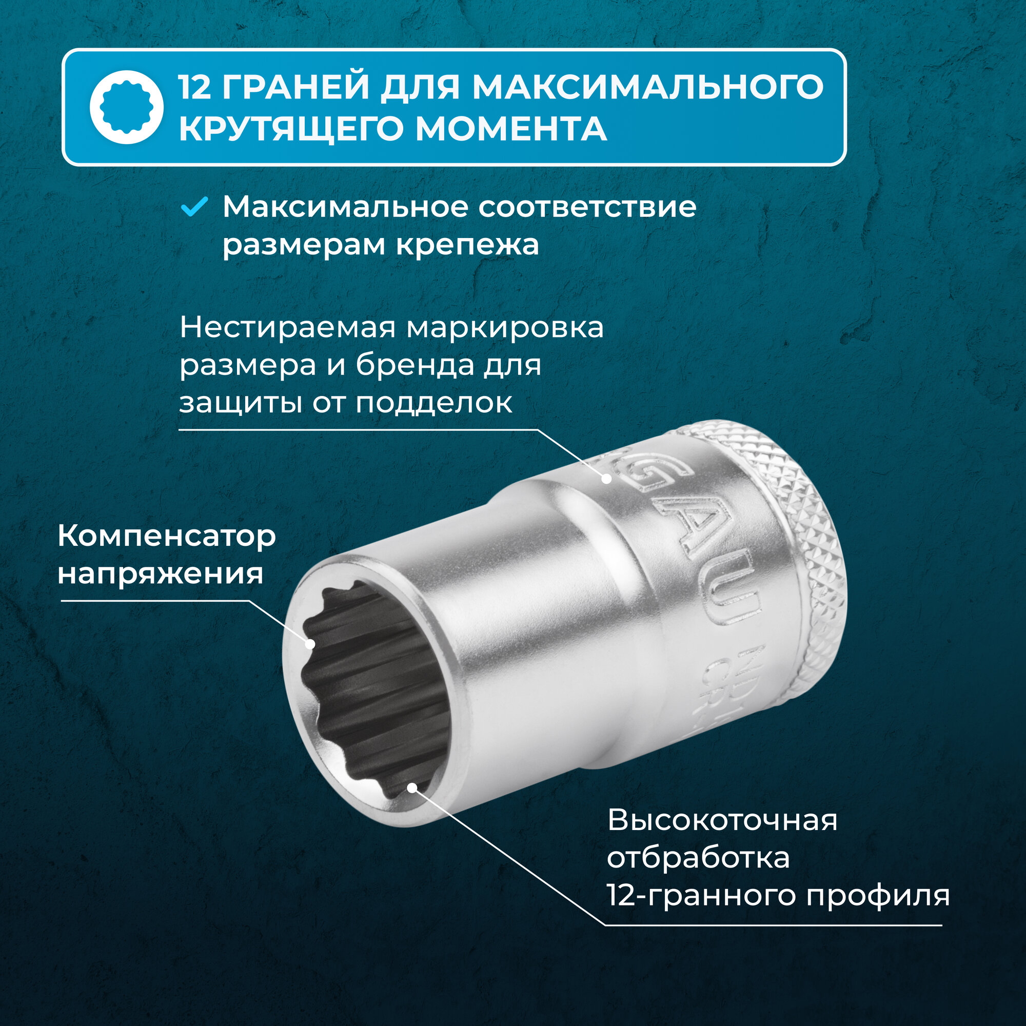 Головка на 14 NORGAU Industrial под квадрат 1/2 двенадцатигранная с шариковой фиксацией и шлифованной поверхностью, DIN 3124 информация: