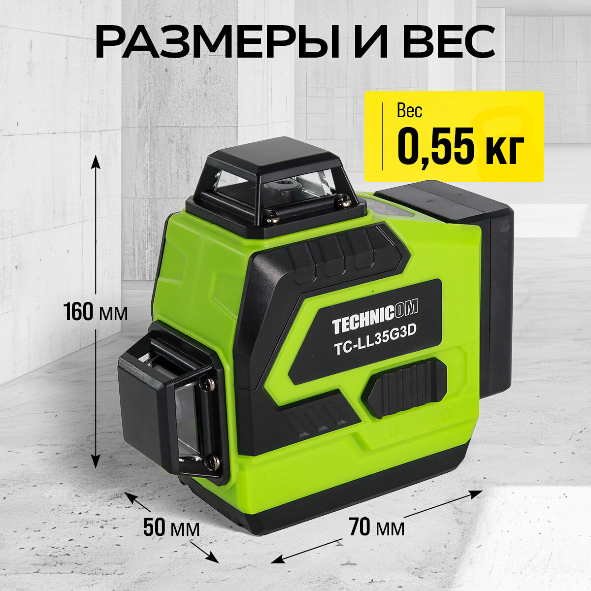 Отзывы на Лазерный 3D уровень TECHNICOM TC-LL35G3D, 12 лучей, дистанция 30м, 3 режима, 2 акб 2400мАч, цвет лазера зелёный