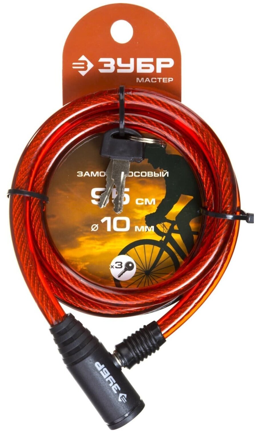 ЗУБР 950 мм, d 10 мм, 3 ключа, тросовый замок (37263-95)