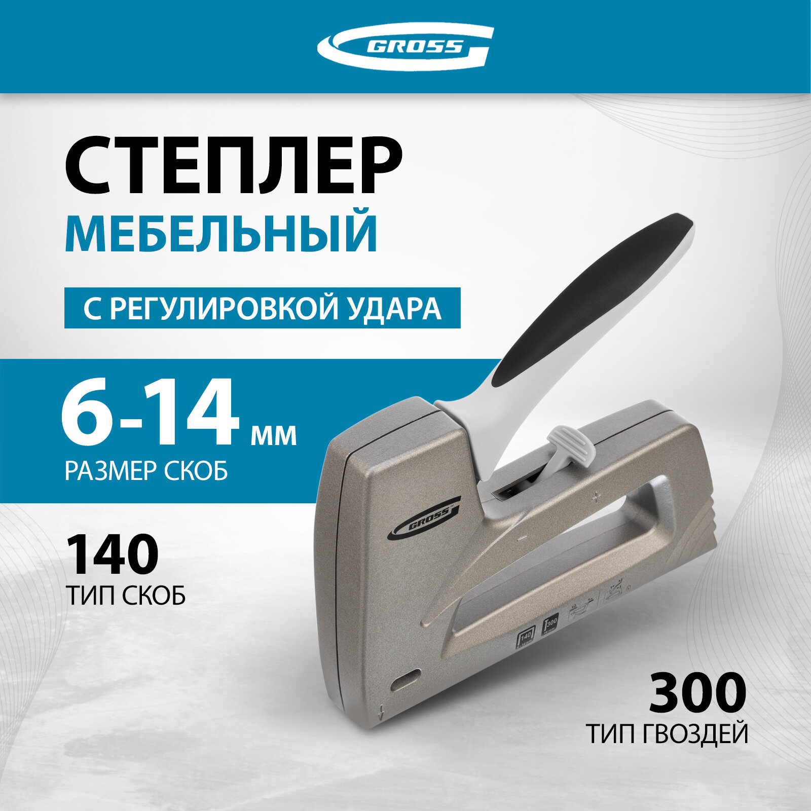 Степлер мебельный (Aluminium 140), алюм. корпус, рег удара, тип скобы 140, 300, 6-14 мм, Gross