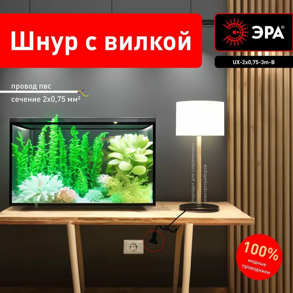 10 цен на Шнур сетевой Эра UX-2х0,75 мм² с вилкой, 3 метра, ПВС, черный, IP20