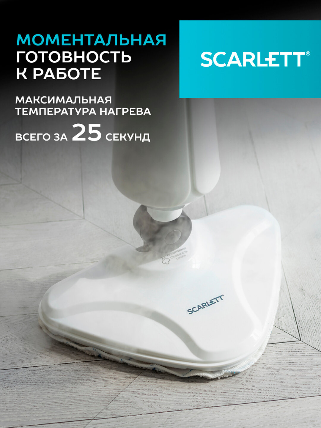Швабра паровая Scarlett SC-STCV67 с нагревом до 25 сек информация: