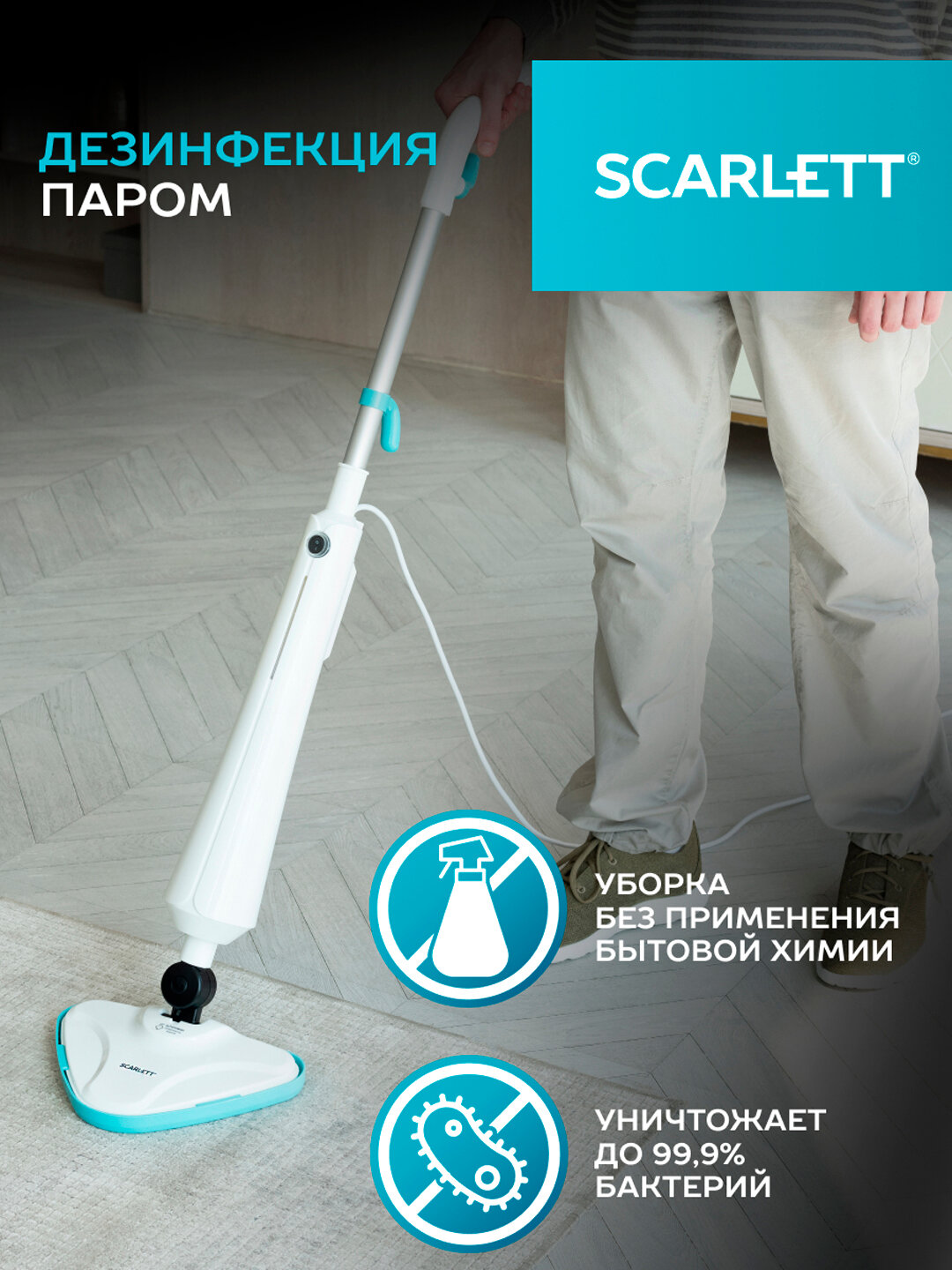 10 цен на Швабра паровая Scarlett SC-STCV67 с нагревом до 25 сек