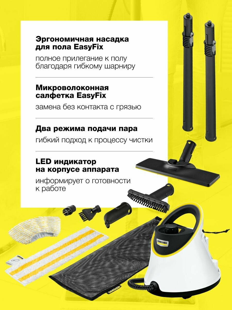 Пароочиститель напольный Karcher EasyFix SC 2 Deluxe 1500Вт белый/желтый