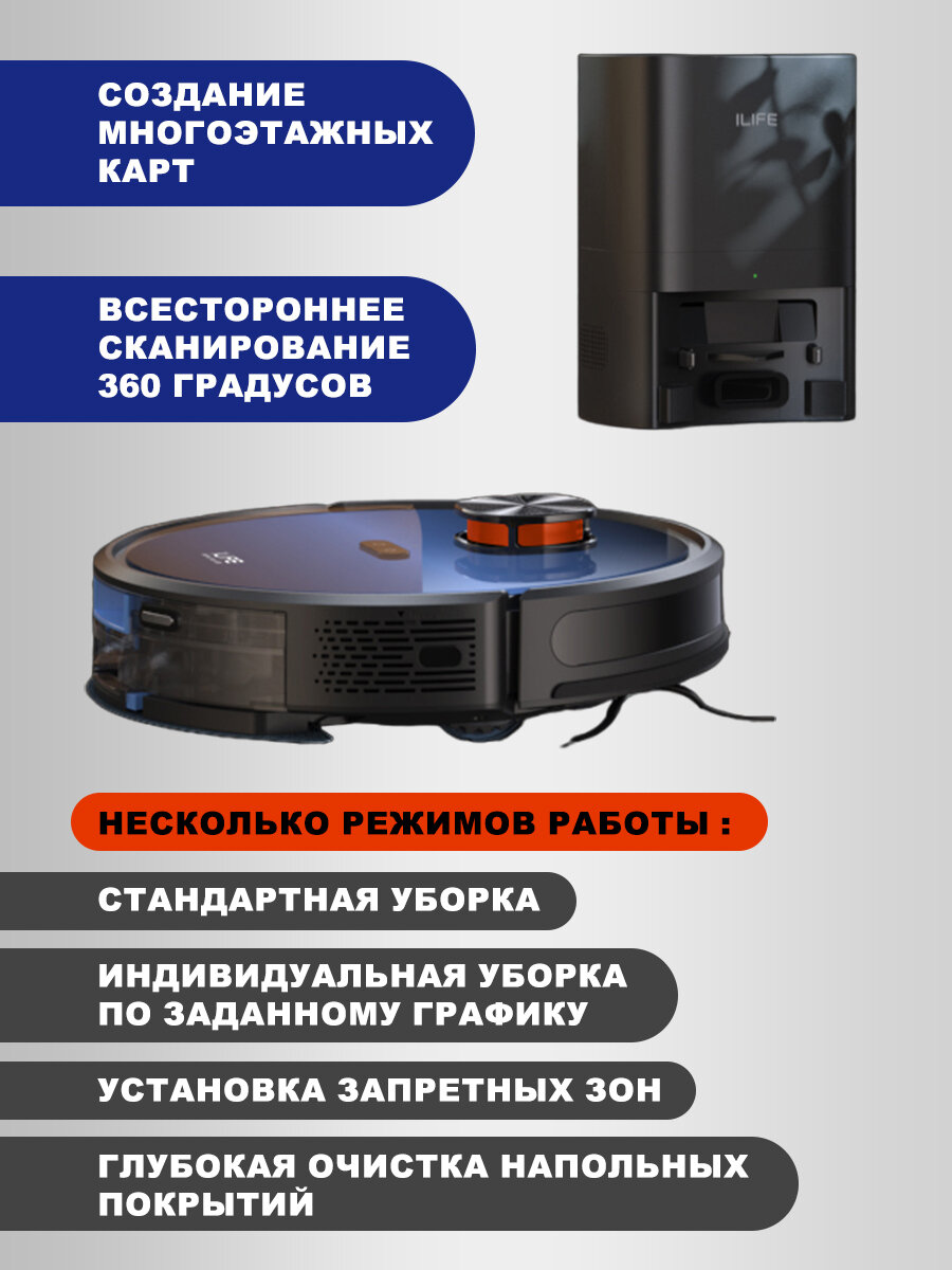 Робот-пылесос ILIFE T10s с влажной и сухой уборкой, лазерной навигацией LDS и самоочисткой информация:
