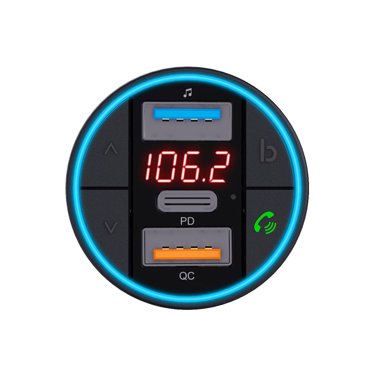Автомобильный FM-передатчик Bluetooth 5,0 с двумя USB-портами и поддержкой быстрой зарядки, With Remote Control
