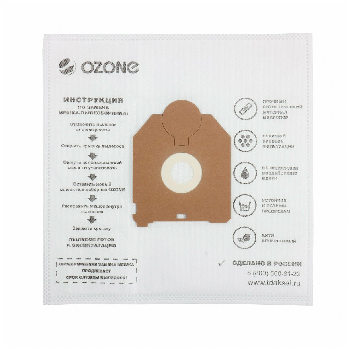 Пылесборник OZONE M-46, синтетический материал, многослойный, микропоры, материал фланца картон информация:
