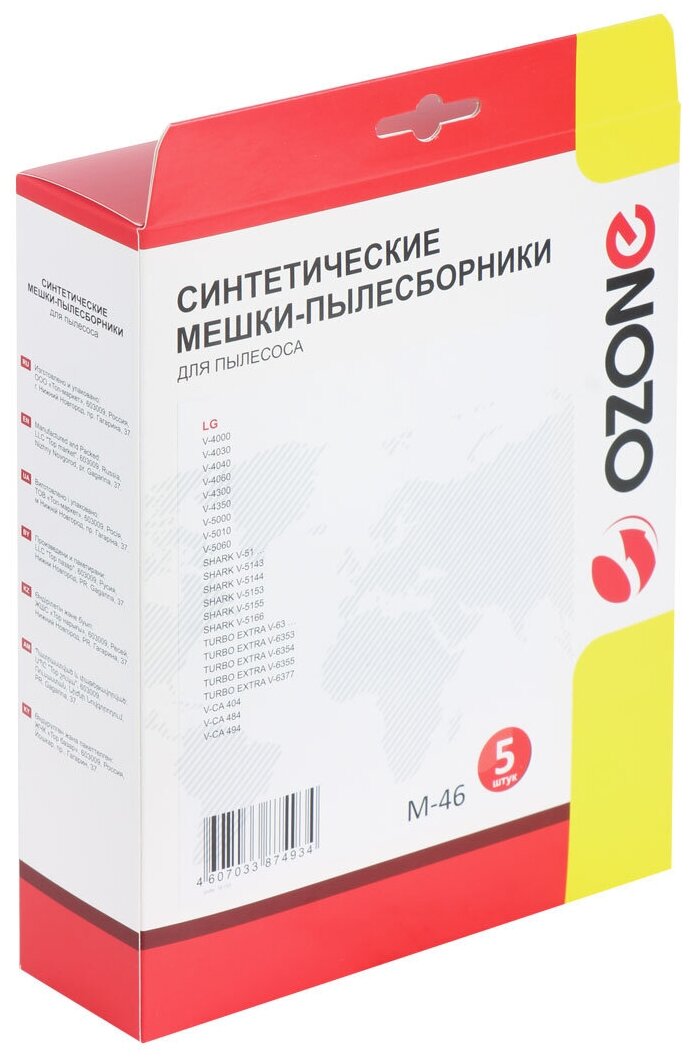 M-46 Мешки-пылесборники Ozone синтетические для пылесоса, 5 шт + микрофильтр