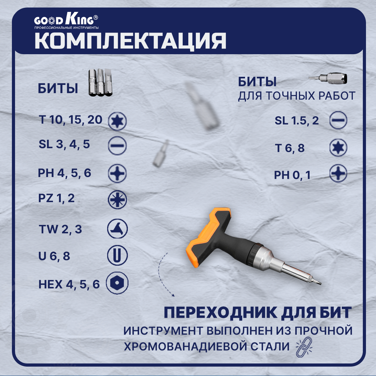 Набор отверток и бит 26 предметов GOODKING отвертка со сменными битами информация: