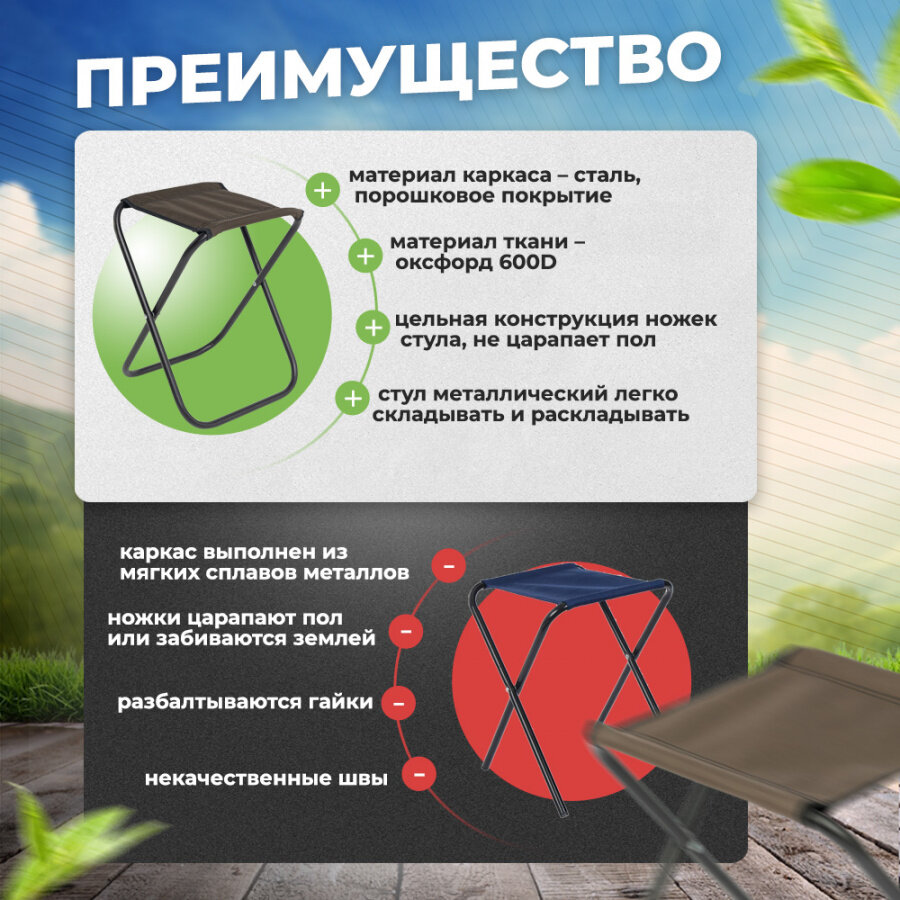Табурет складной Маяк, стул туристический для рыбалки, хаки, большой