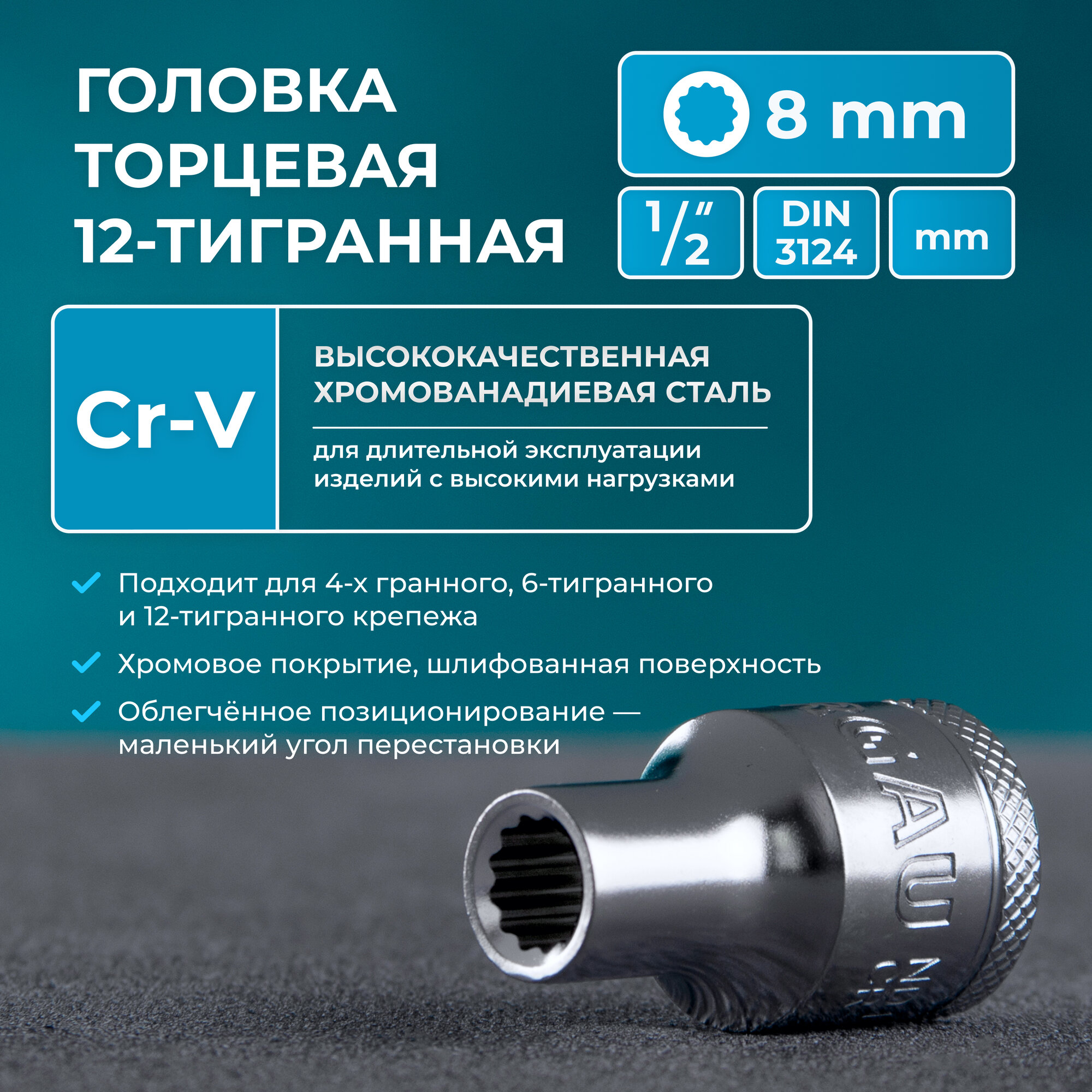 Отзывы на Головка на 8 NORGAU Industrial под квадрат 1/2 двенадцатигранная с шариковой фиксацией и шлифованной поверхностью, DIN 3124