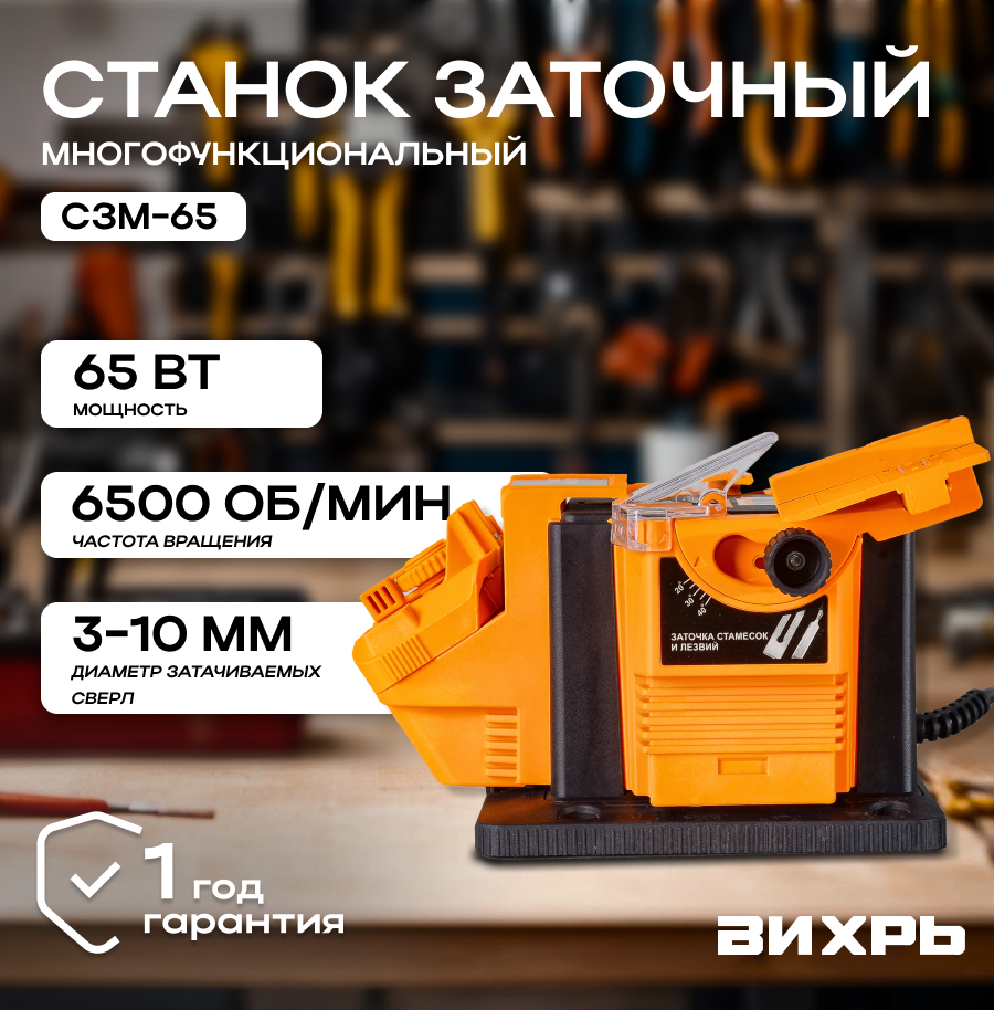 Станок заточный "Вихрь" СЗМ-65, 65 Вт, сверла 3-10 мм, стамески/лезвия 6-51 мм + подарок