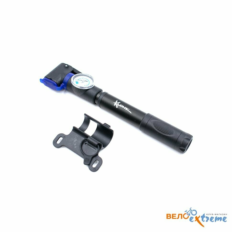 Велонасос ручной с манометром, 25х250 мм, для велосипеда с ниппелем AV/PV/DV, Т-образная ручка, KLONK